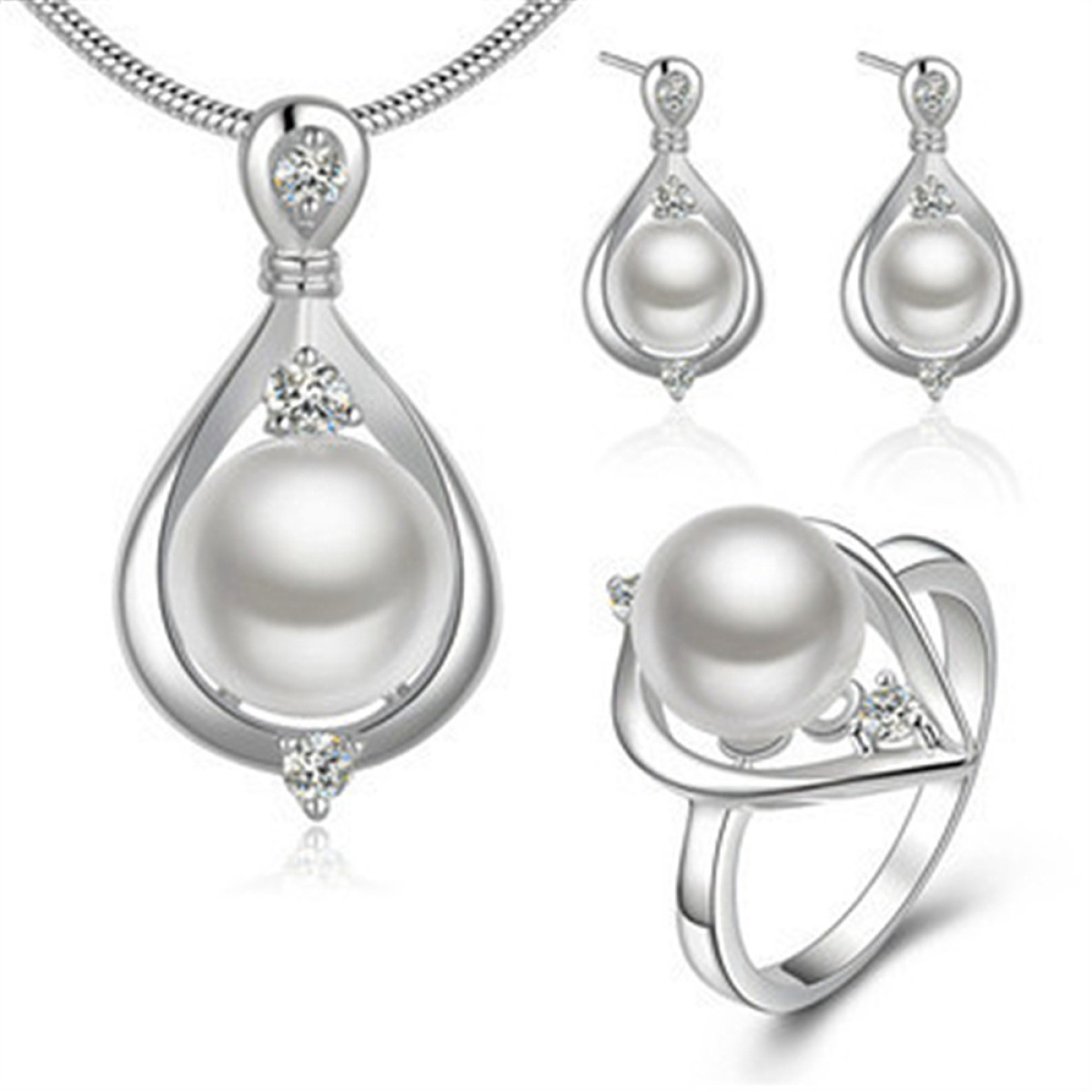 Silver Plated Jewelry Creative Pearl Set Set