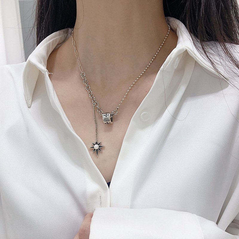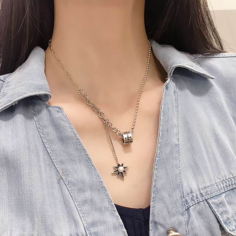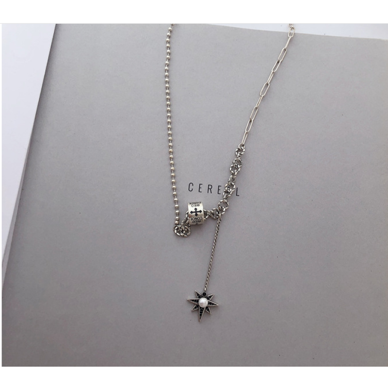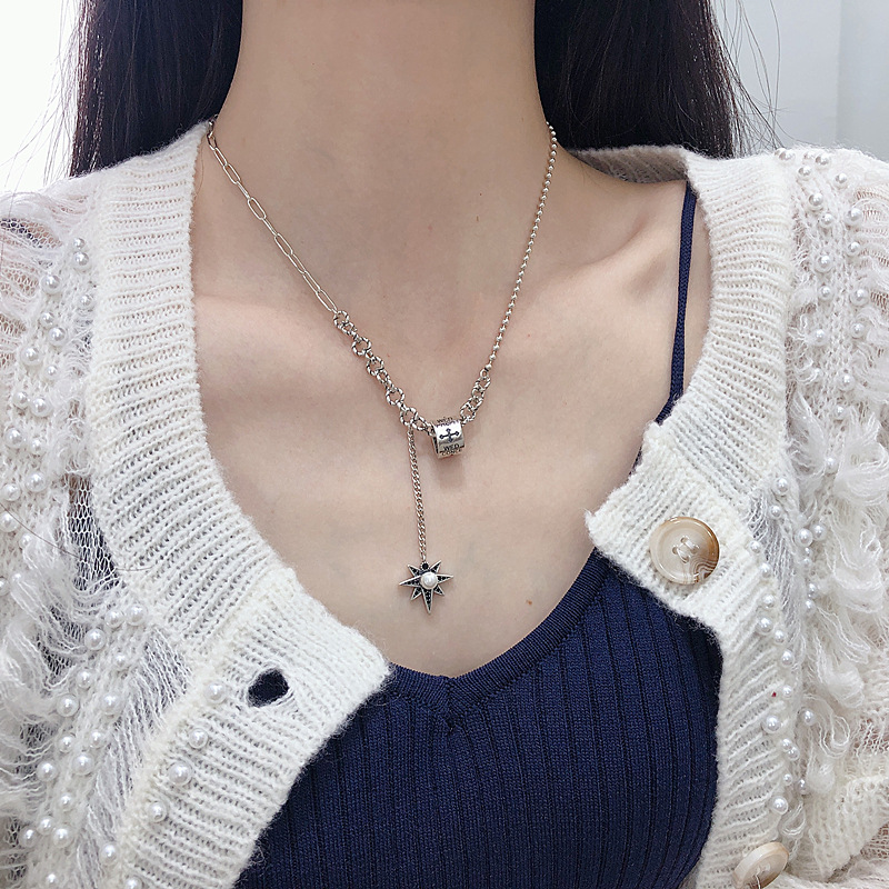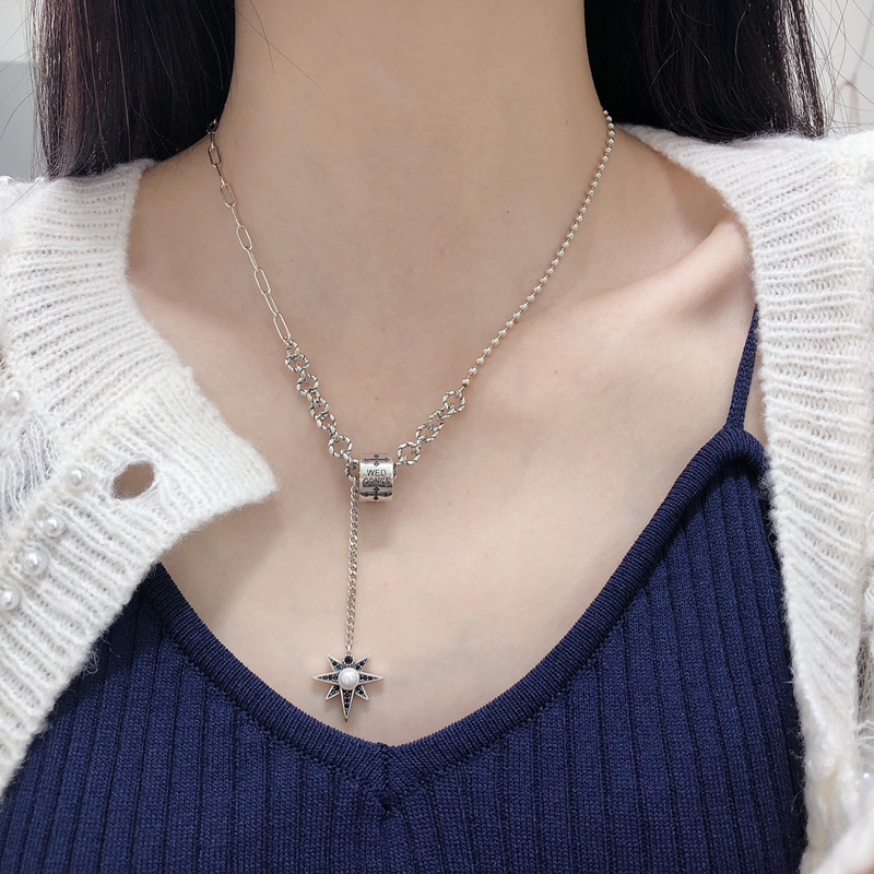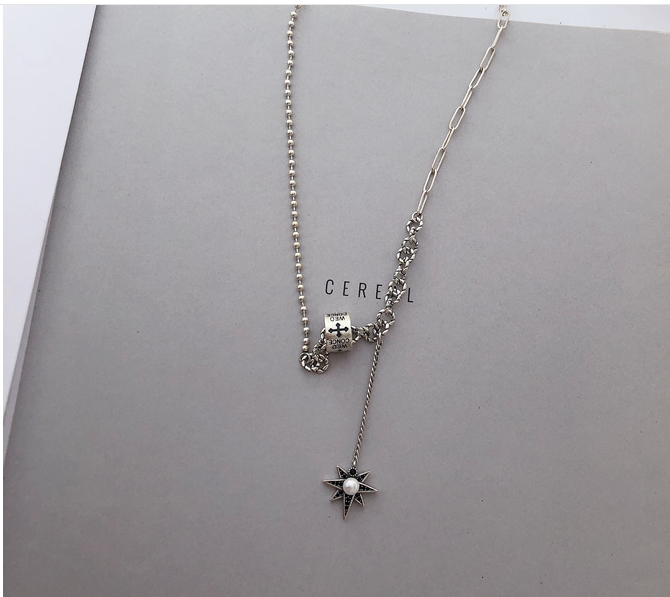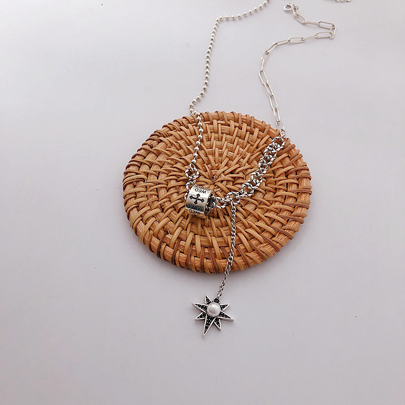 Silver Temperament Eight-pointed Star Tassel Necklace Female Retro Personality