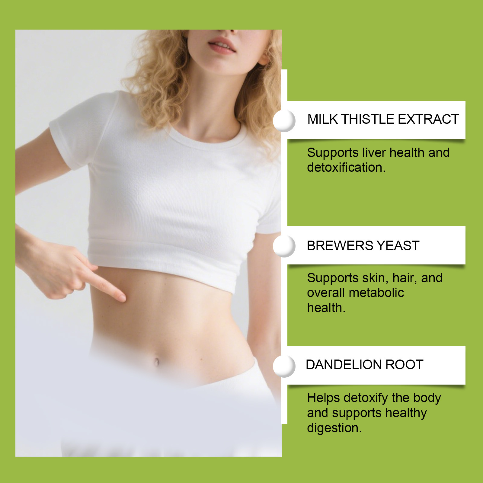 Ingredients: vitamin B1, vitamin B2, vitamin B6, vitamin B12, artichoke extract, dandelion, fennel, licorice, milk thistle extract, alfalfa powder.