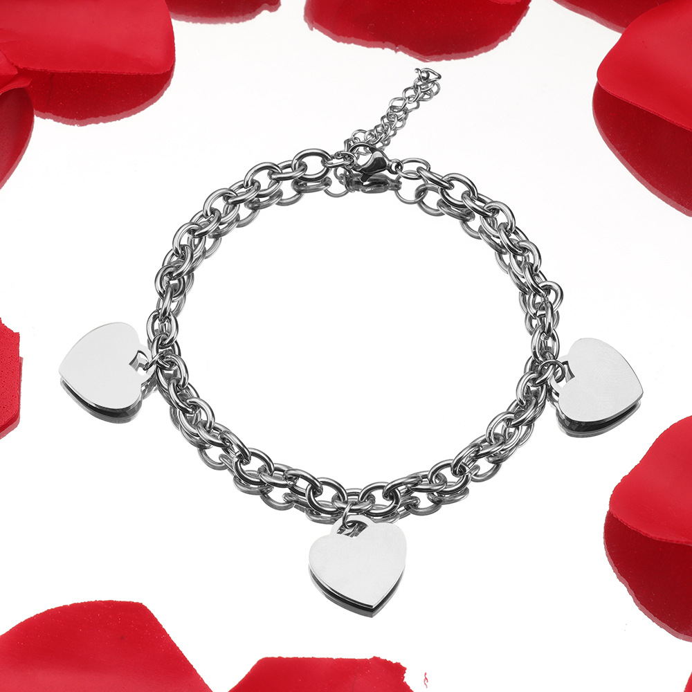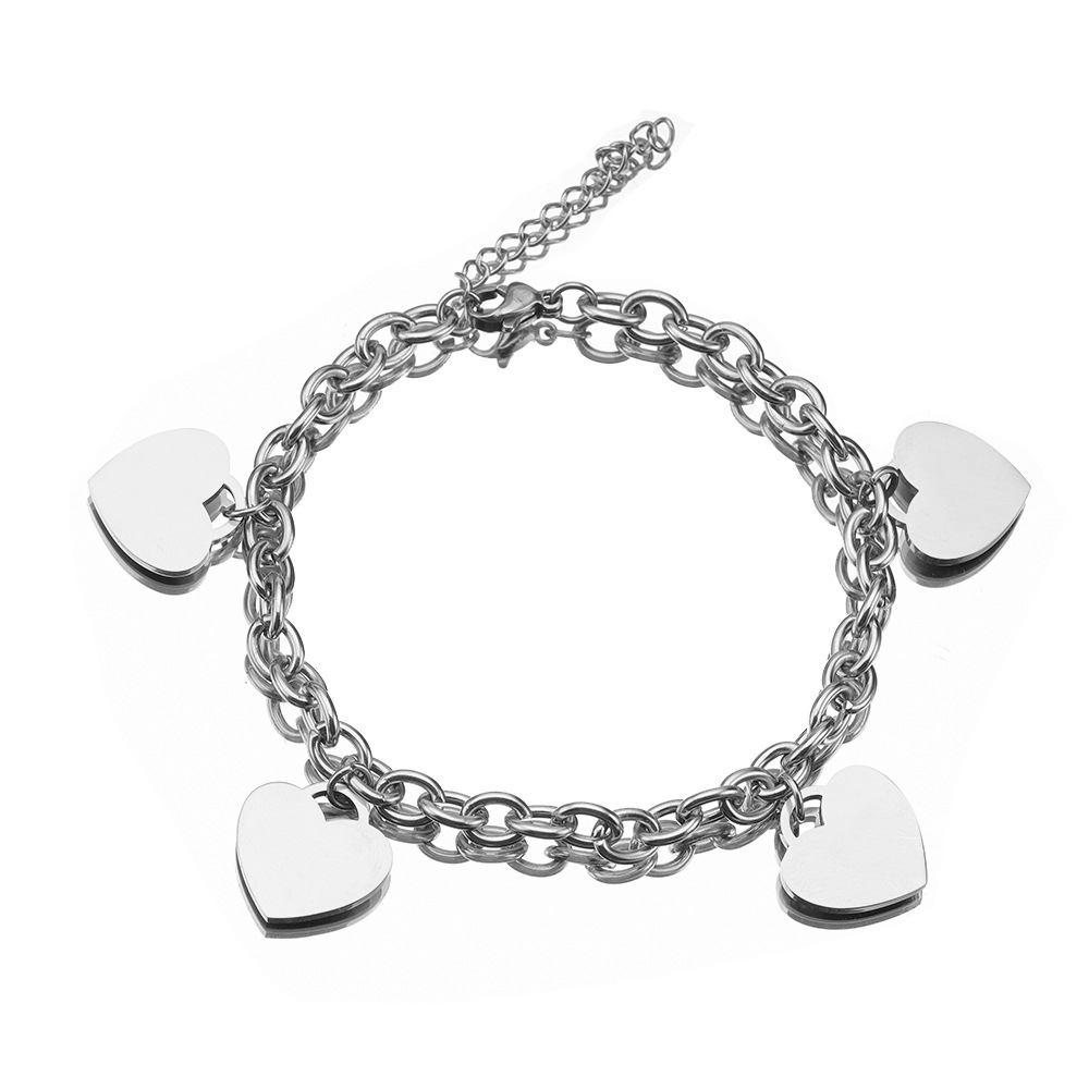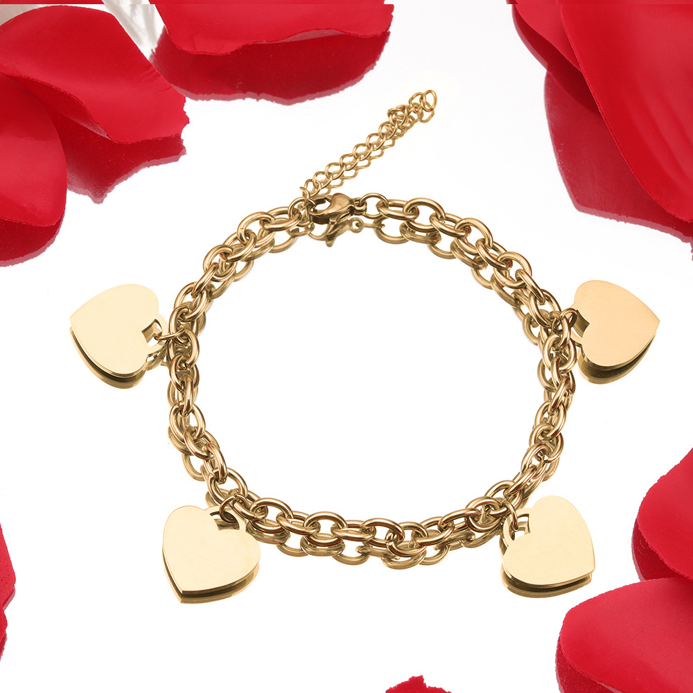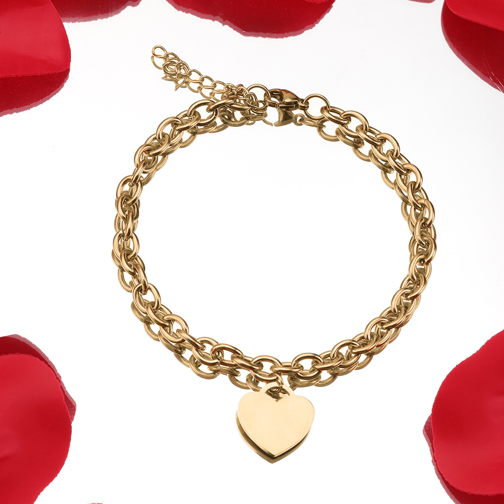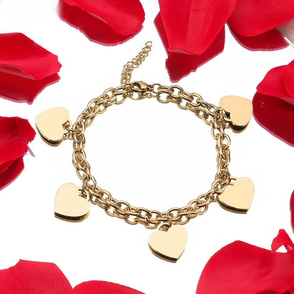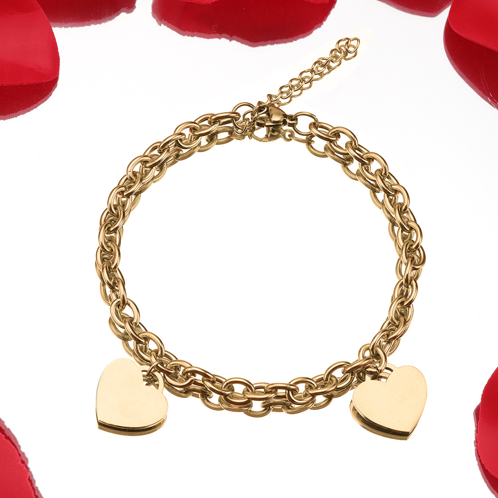 Simple 18k Gold Stainless Steel Golden Heart Engraved Bracelet