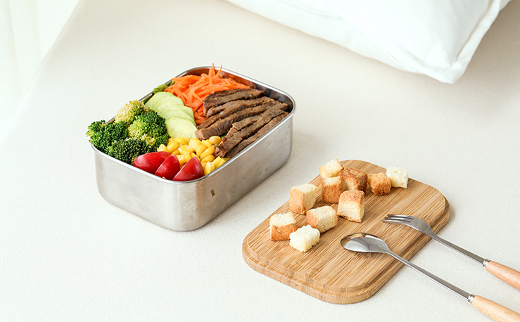 The stainless steel box body can be directly put into the steamer or boiling water, but not microwave heating