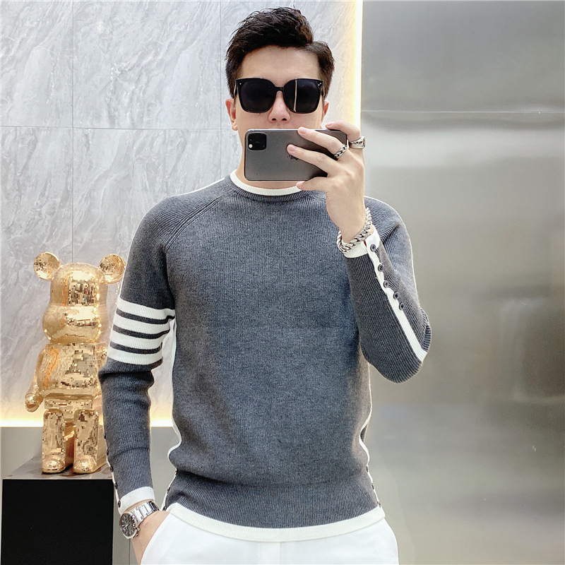Simple All-match Round Neck Pullover Stripe Sweater Youth Fashion Trendy Long-sleeve Sweater Men
