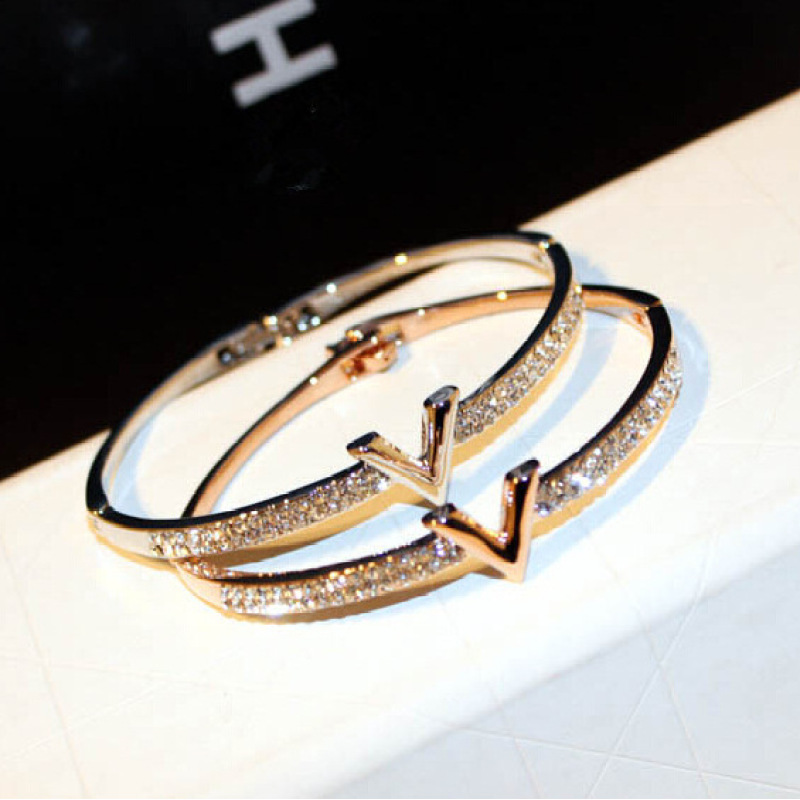 Simple And Atmospheric Water Diamond Inlaid Letter Temperament Bracelet