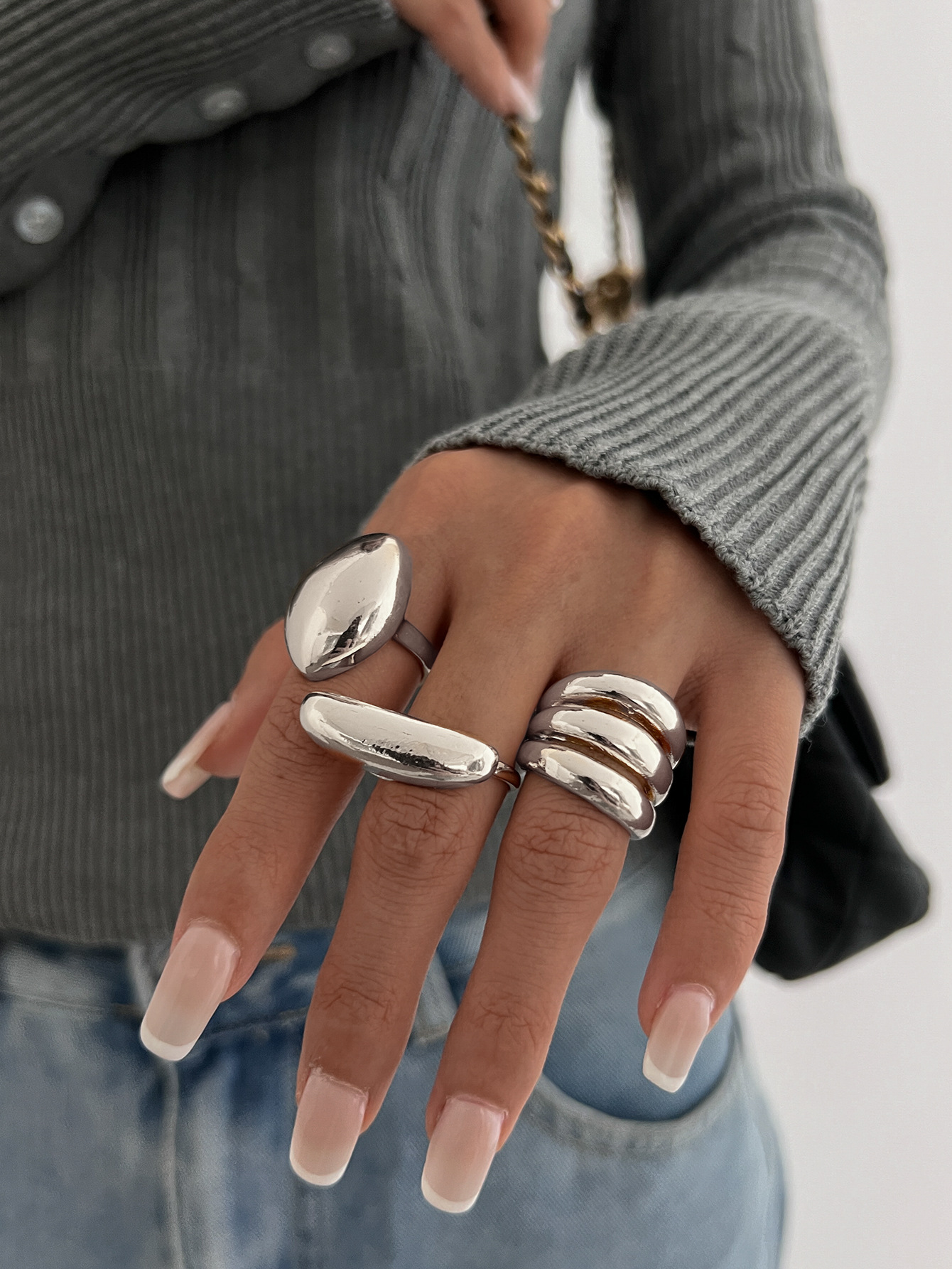 Simple And Irregular Open-end Personality Ring Three-piece Set