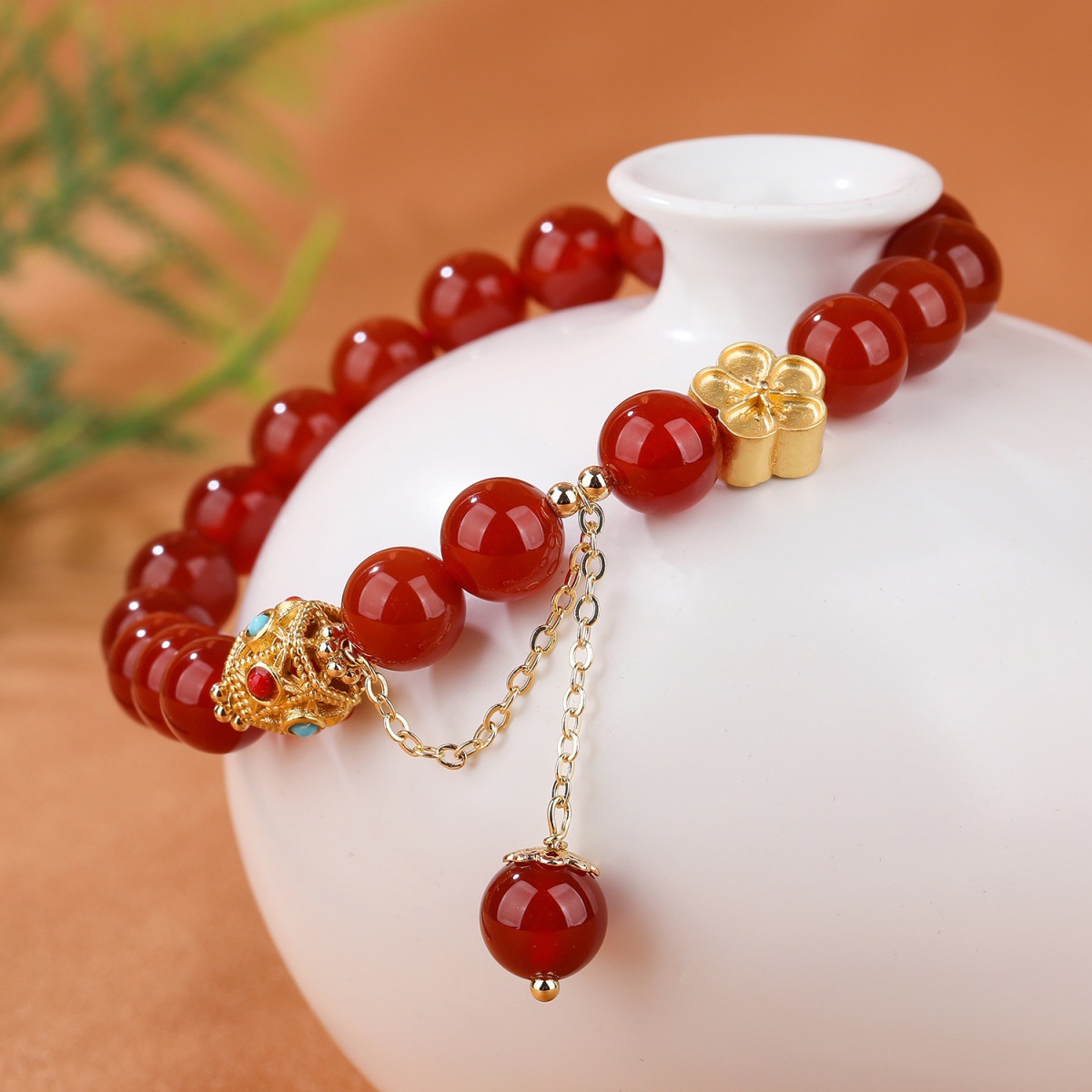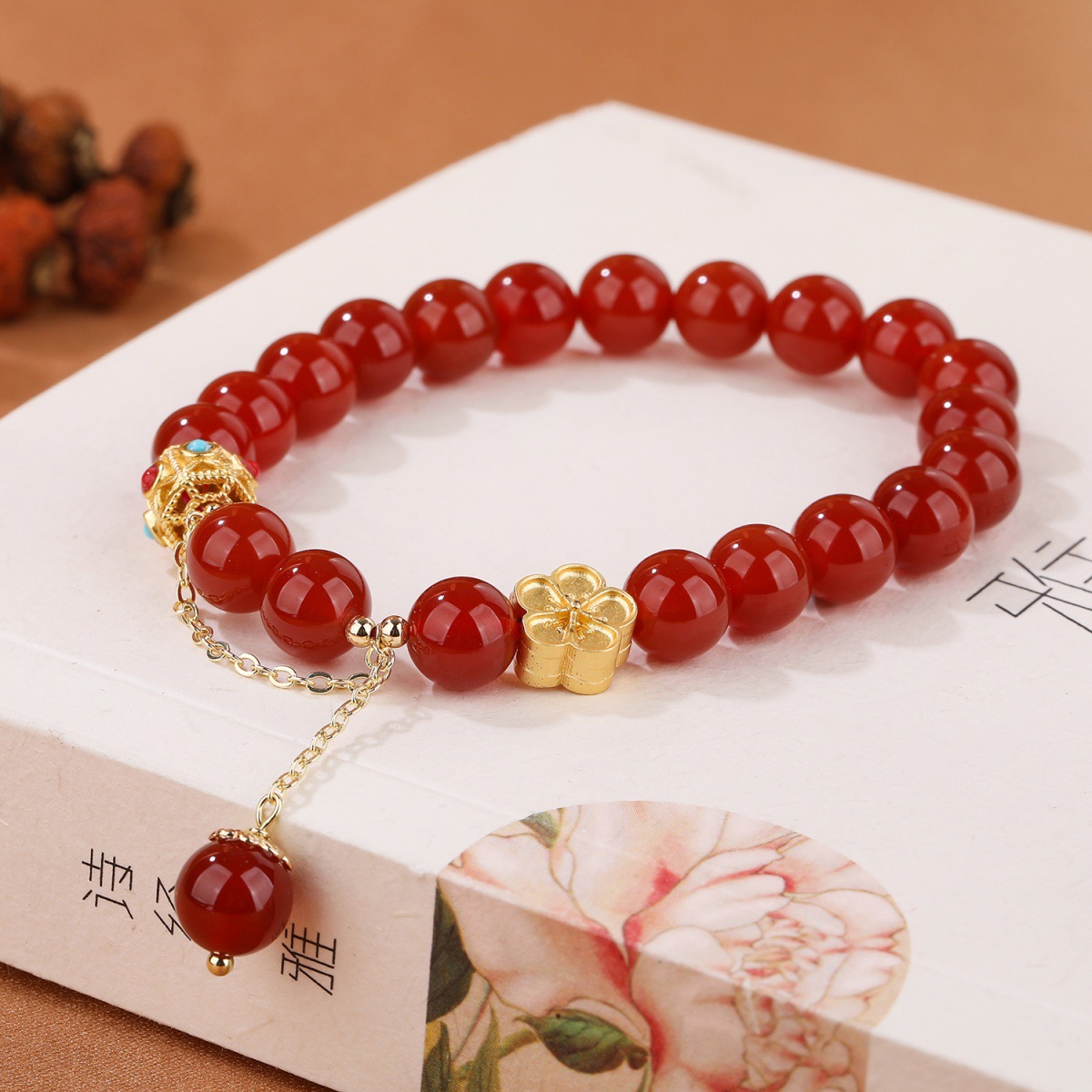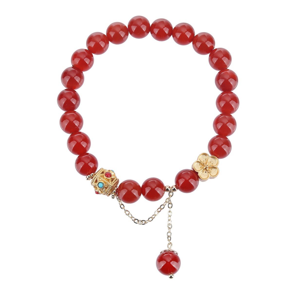 Color: natural red agate bracelet peach blossom copper parts about 8mm, natural agate bracelet peach blossom copper parts about 8mm