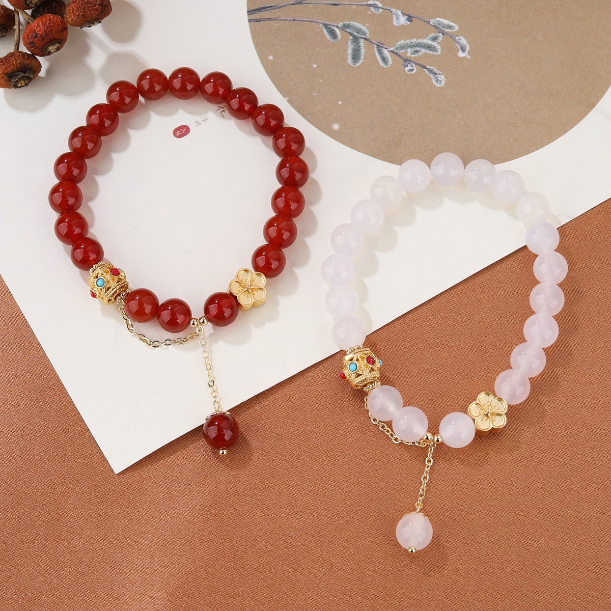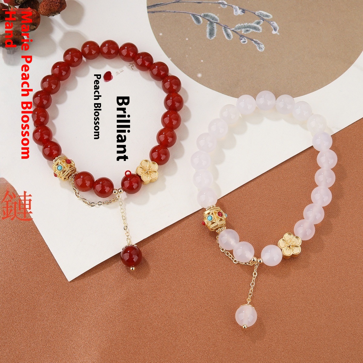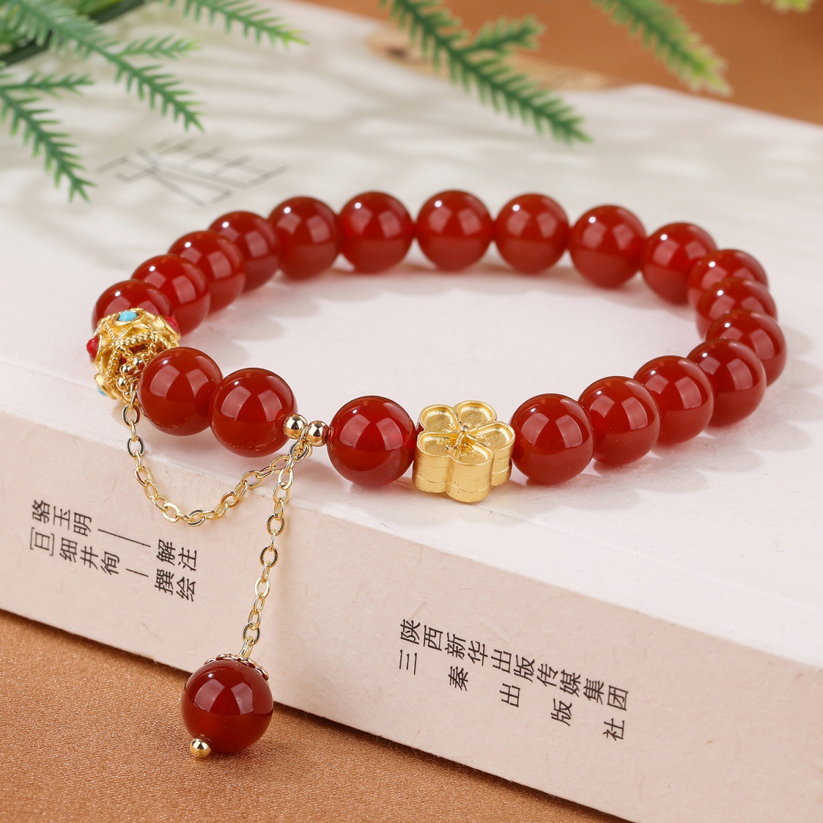 Color: natural red agate bracelet peach blossom copper parts about 8mm, natural agate bracelet peach blossom copper parts about 8mm