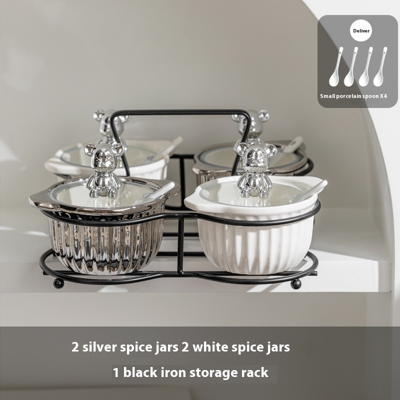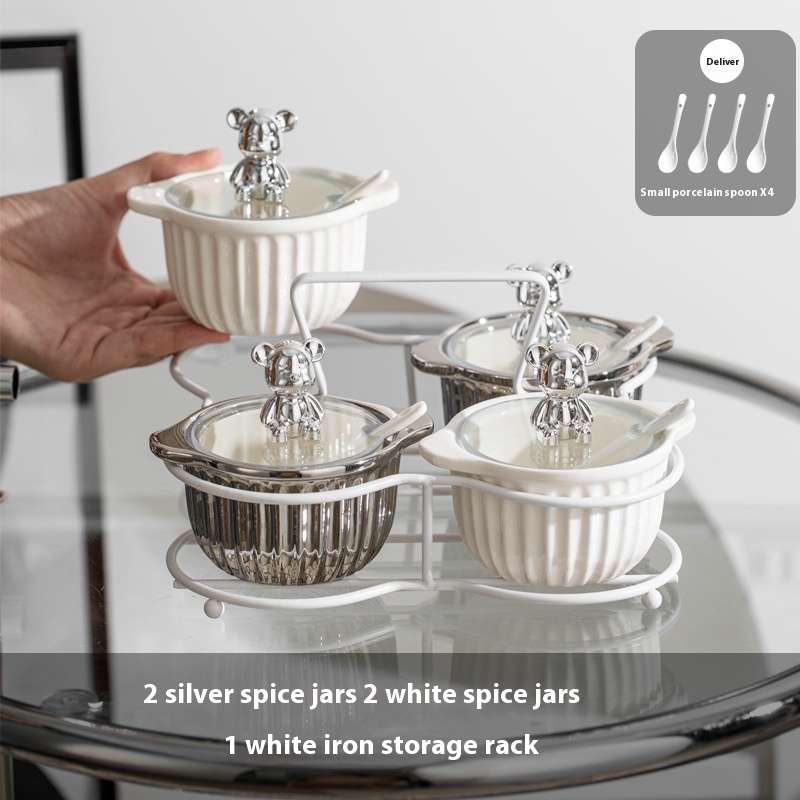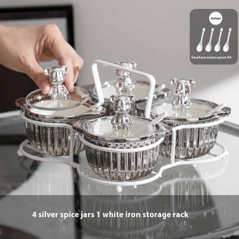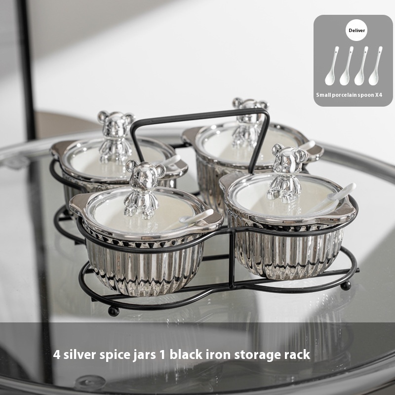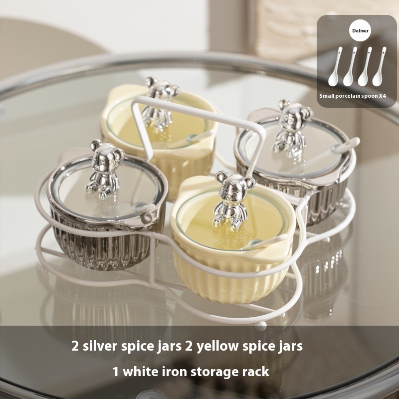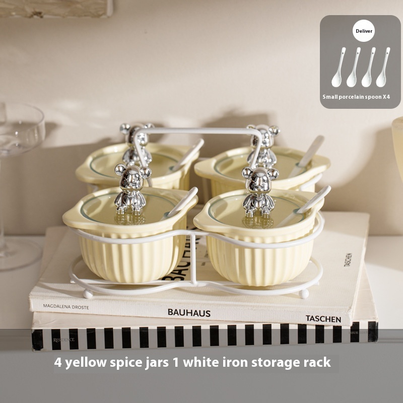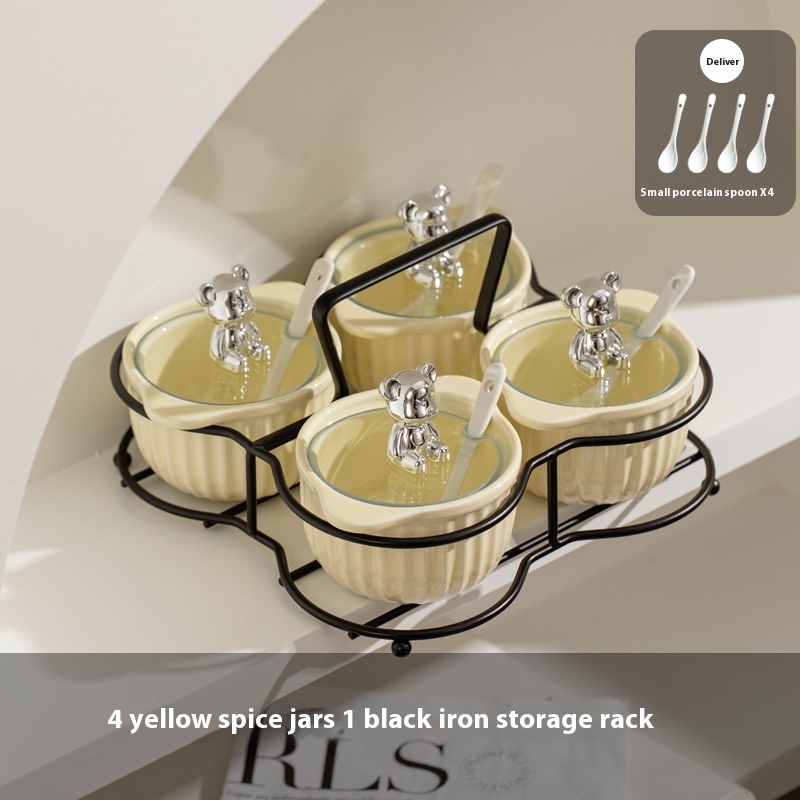Specifications: Silver seasoning jar [white rack], silver and white seasoning jar [white rack], silver and yellow seasoning jar [white rack], custard seasoning jar [white rack], silver seasoning jar [Black rack]], silver white seasoning jar [Black rack], silver yellow seasoning jar [Black rack], custard seasoning jar [Black rack]]