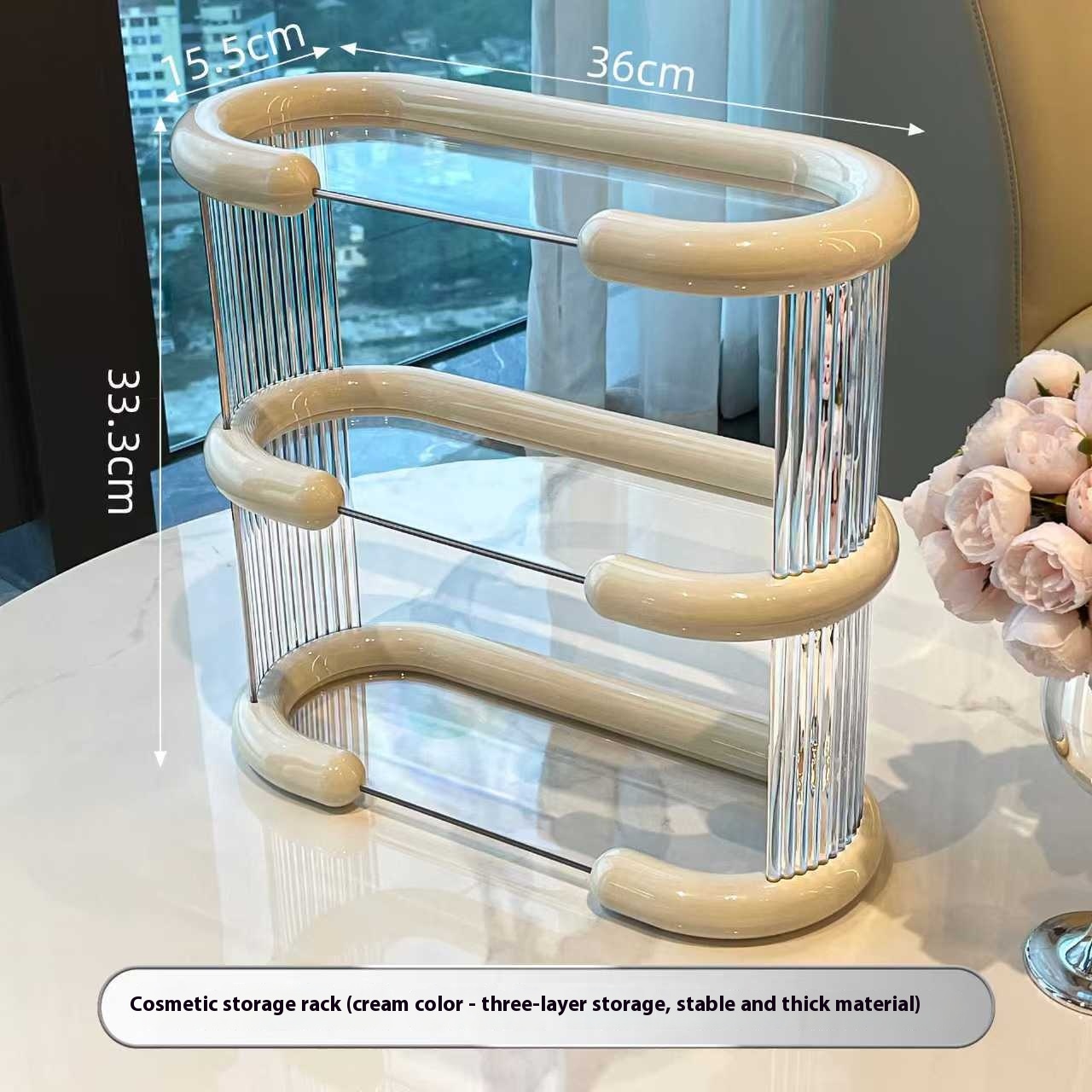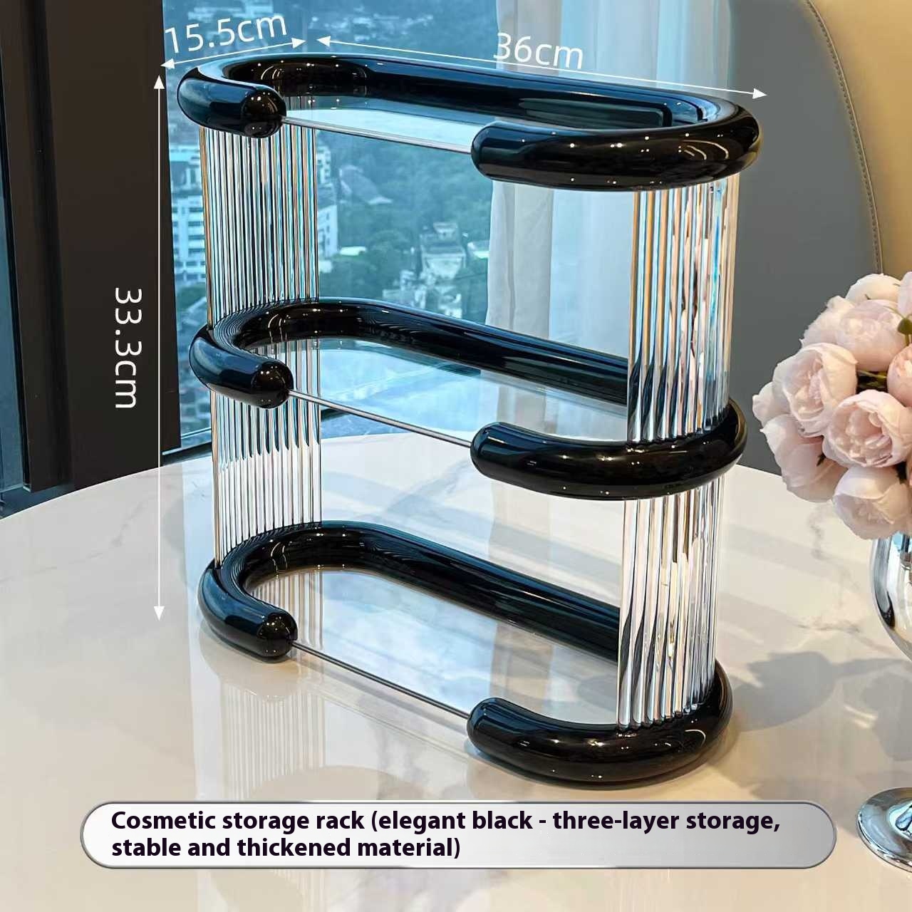 Color: double layer cosmetics shelf-cream, three layers cosmetics shelf-cream, double layer cosmetics shelf-elegant black, three layers cosmetics shelf-Black
