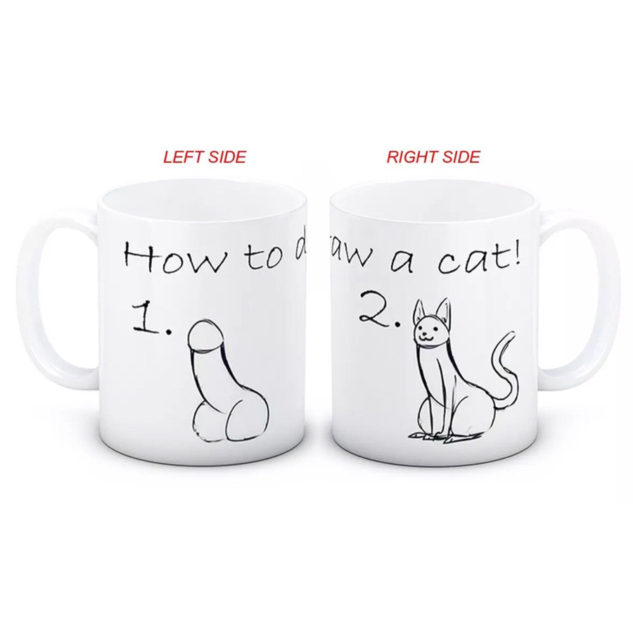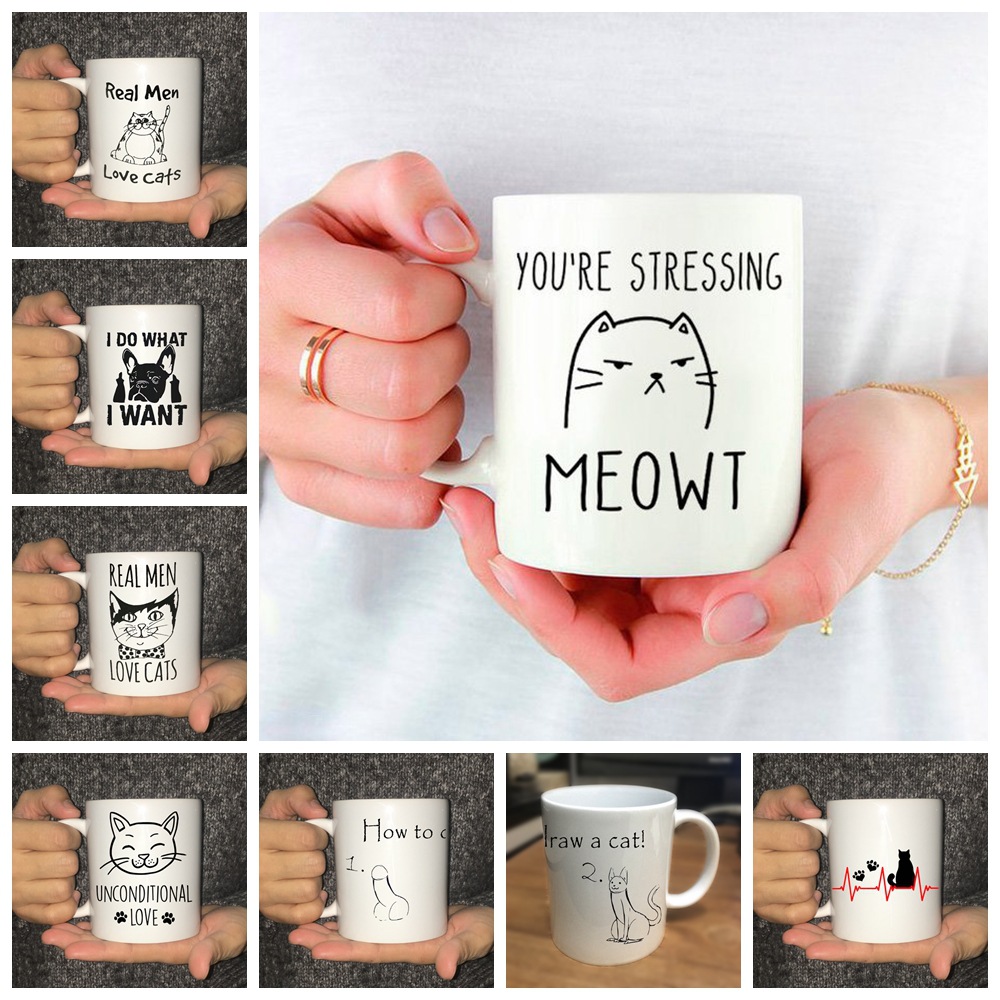 Simple animals: dog, cat, coffee ceramic cup, customizable color-changing cup
