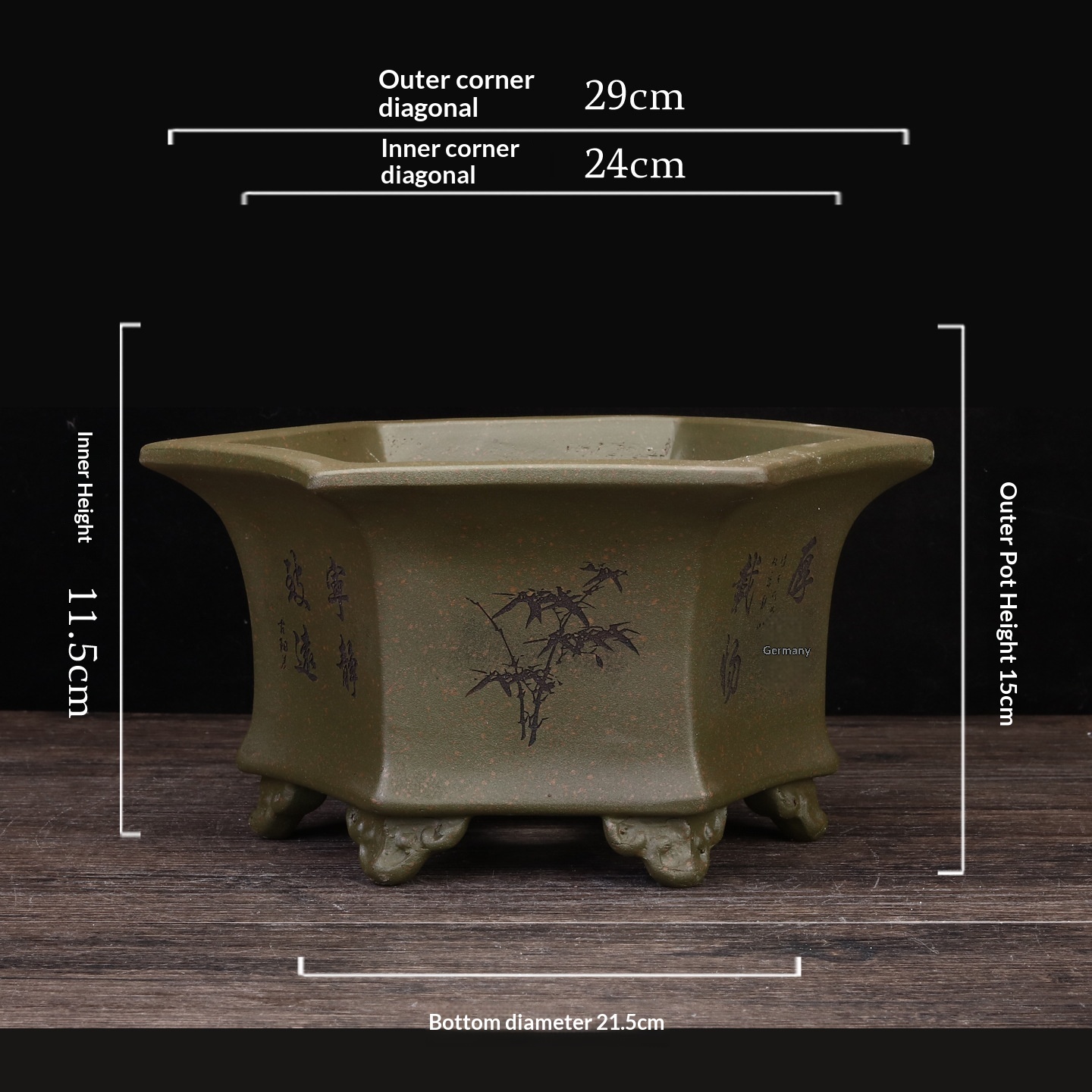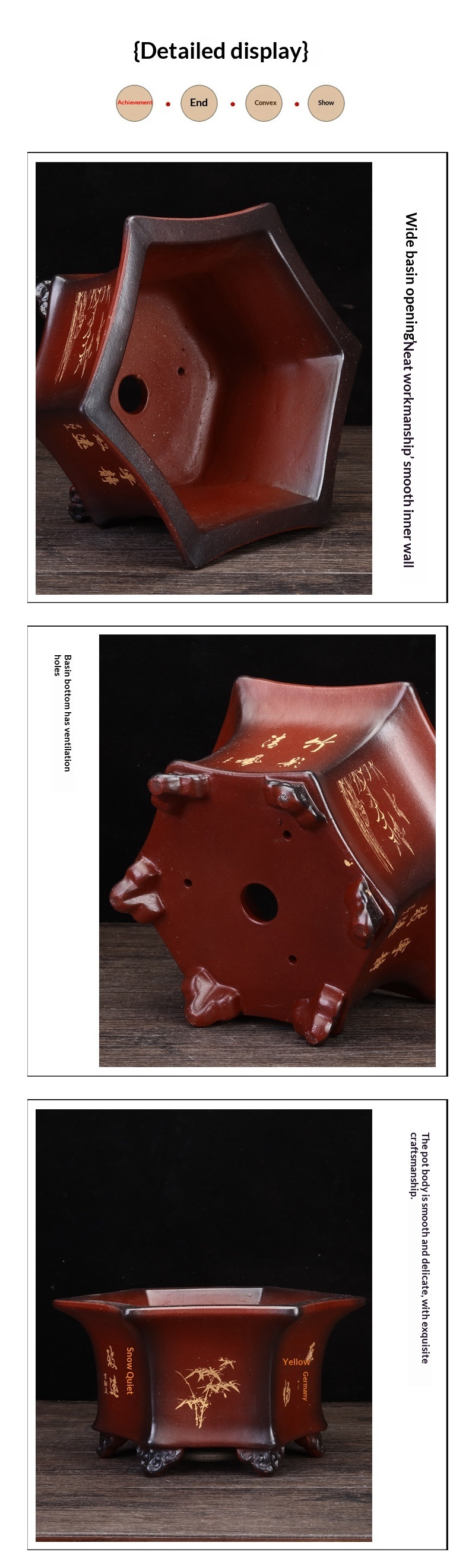 Color: Green hexagonal carved design, red hexagonal carved design, yellow wood-fired hexagonal carved design