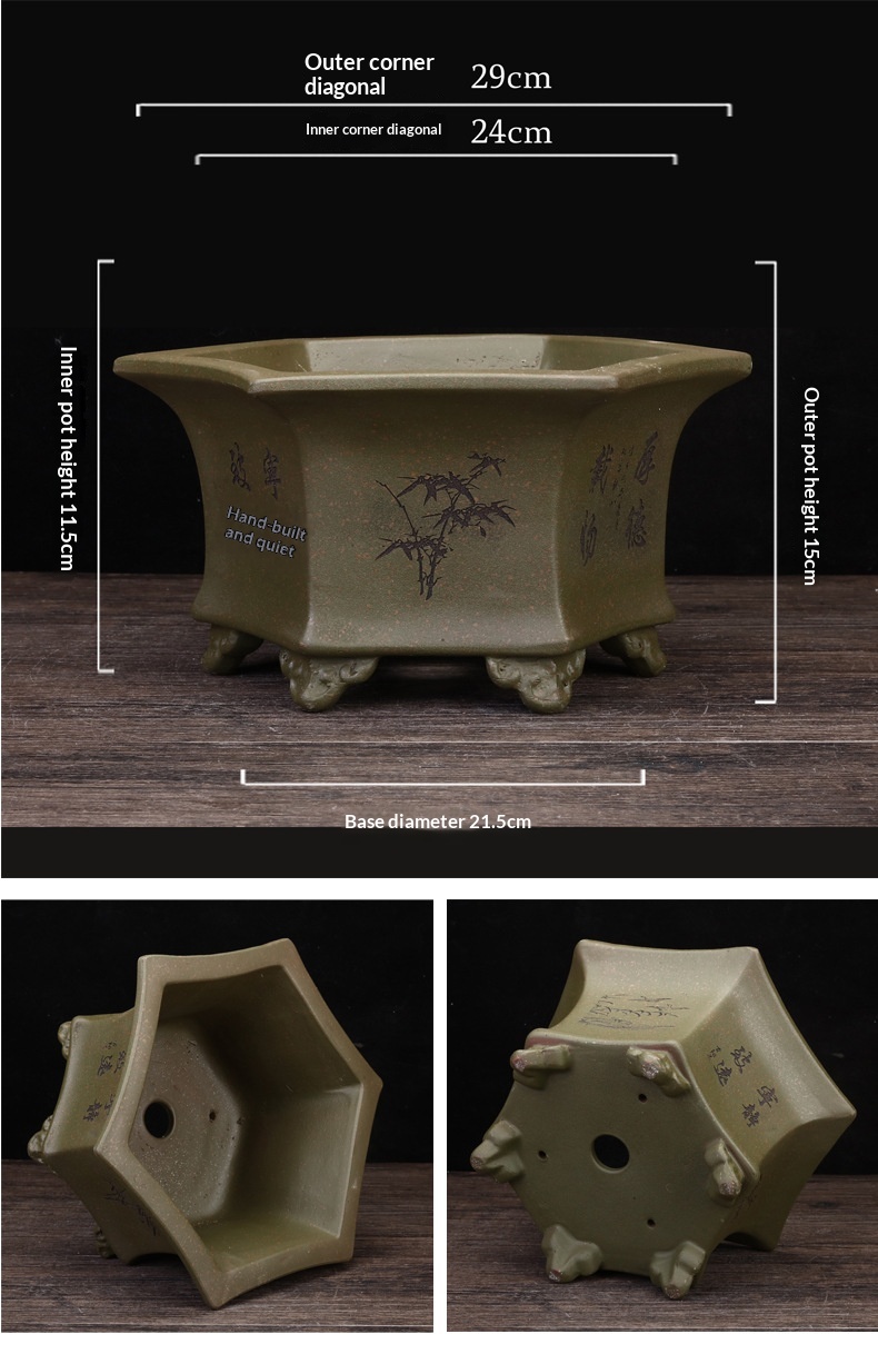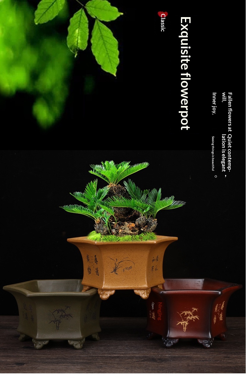 Simple Breathable Hexagonal Ceramic Orchid Pot Made From Clay For Home Use