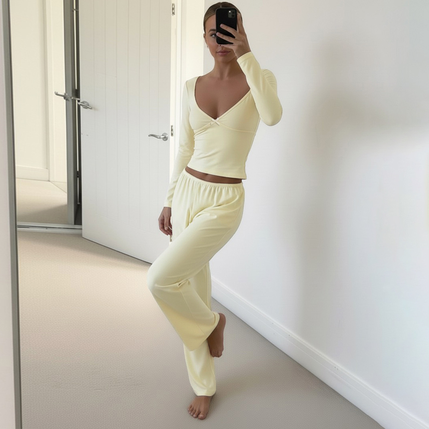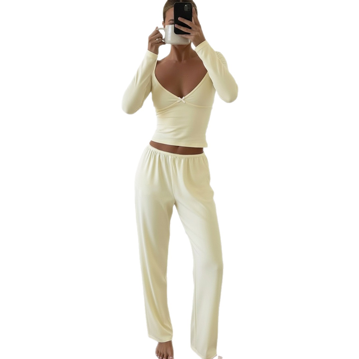 Simple Casual Suit Deep Slim Long Sleeve Low Waist Bootcut Trousers Women's Clothing