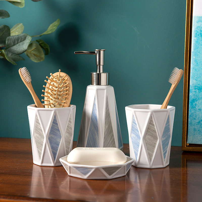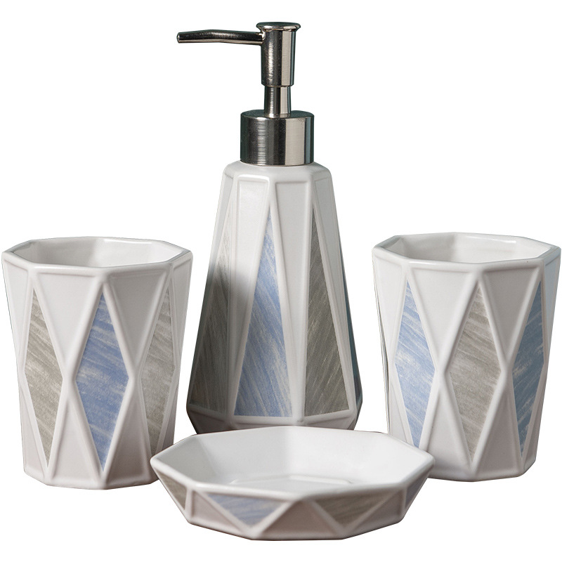 Product Information:Material: CeramicItem No.: Four-piece bathroom setColor: white, blue