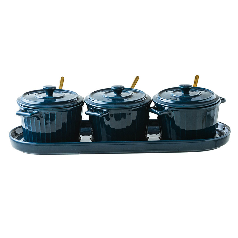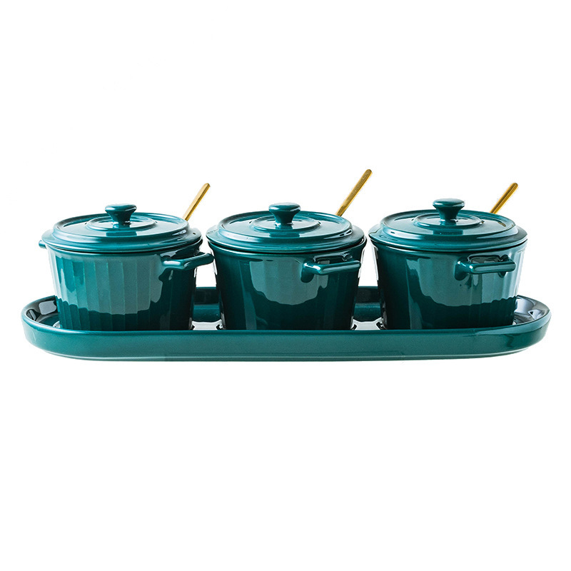 Porcelain jar×3, lid×3, tray×1, spoon×3