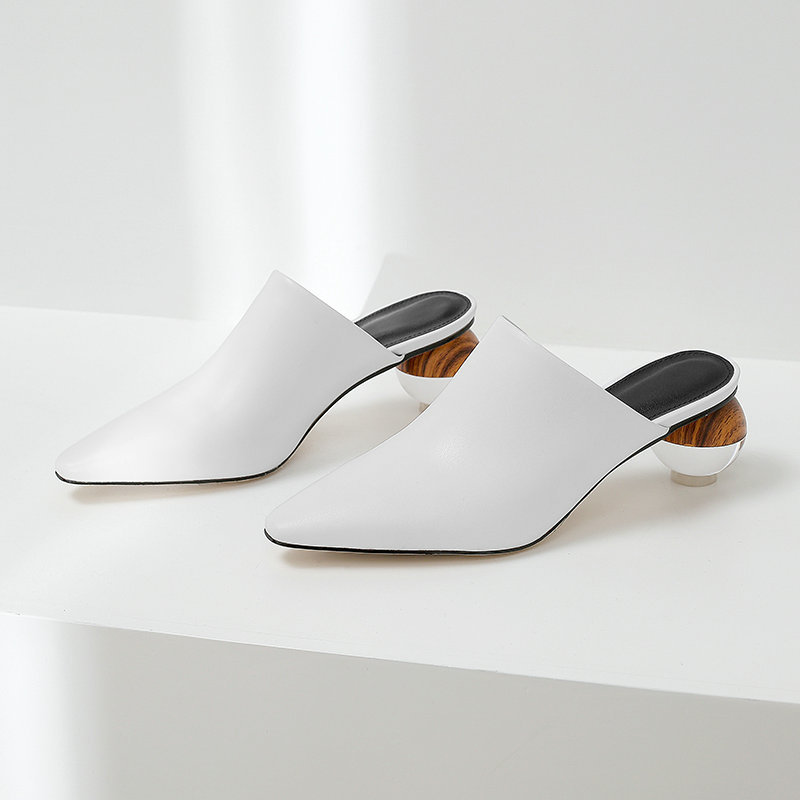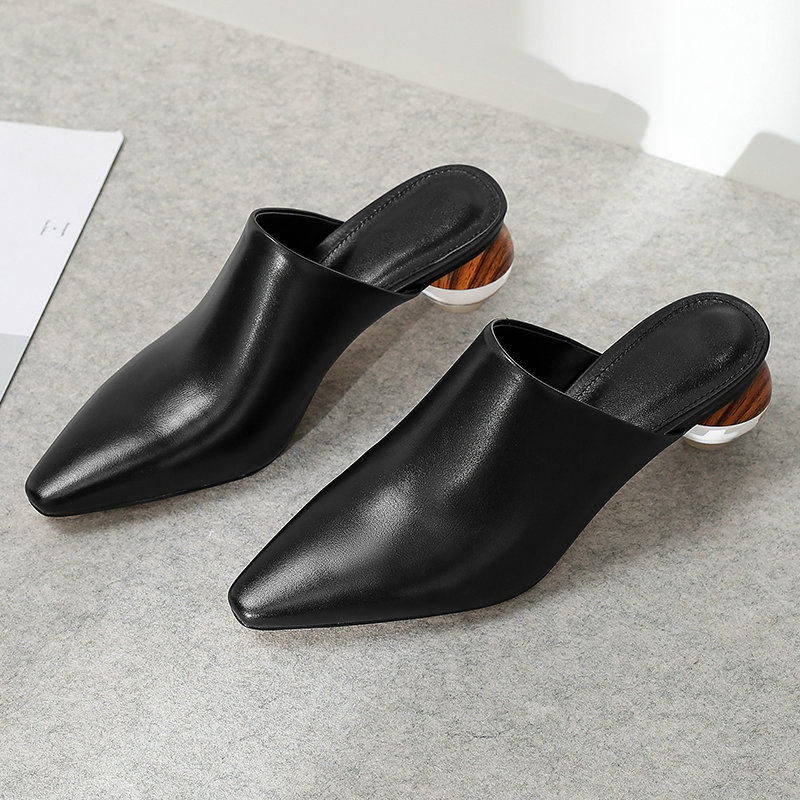 Simple Closed Toe Sandals Pointed-toe Mules Shoes Crystal Thick Heel