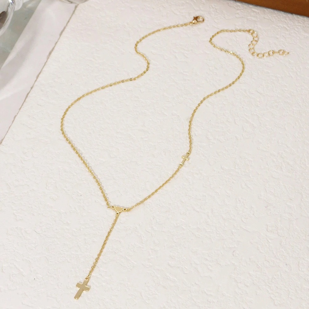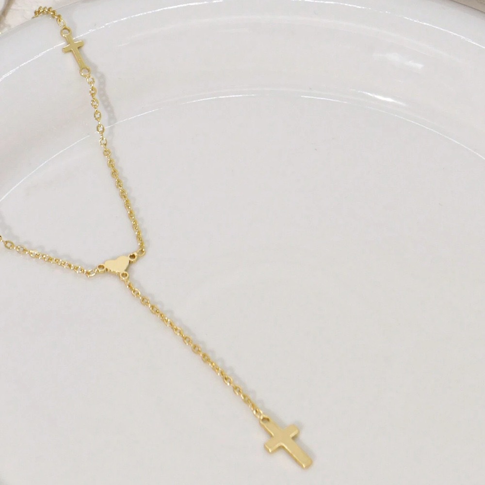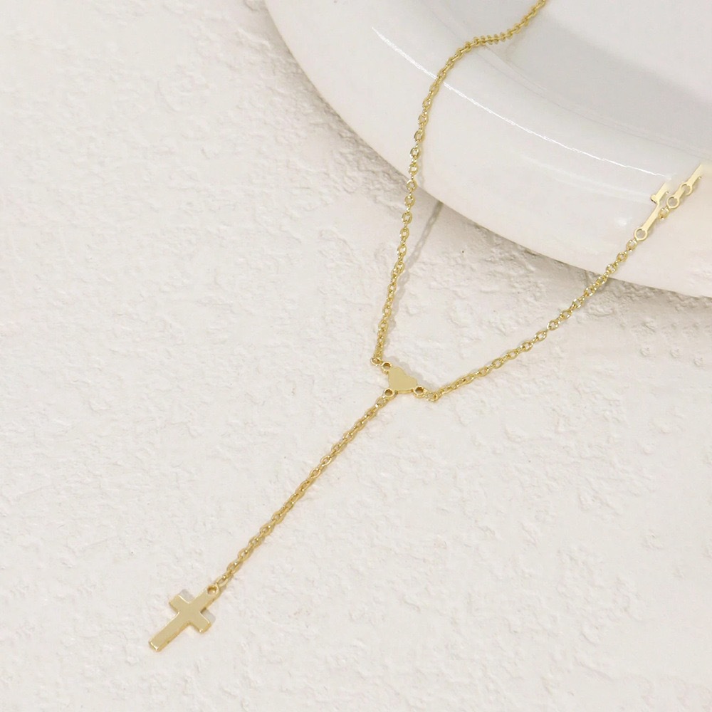 Color: Gold heart-shaped cross Y necklace, silver heart-shaped cross Y necklace
