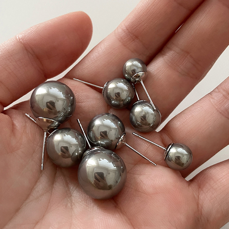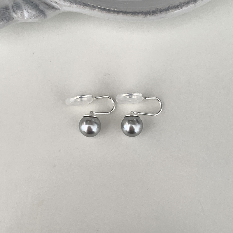 Color: silver gray pearl stud earrings-8mm, silver gray pearl stud earrings-10mm, silver gray pearl stud earrings-12mm, silver gray pearl stud earrings-14mm, silver gray pearl mosquito coil ear clip-8mm, silver gray pearl mosquito coil ear clip-10mm, silver Gray Pearl mosquito coil ear clip-12mm, silver gray pearl mosquito coil ear clip-14mm