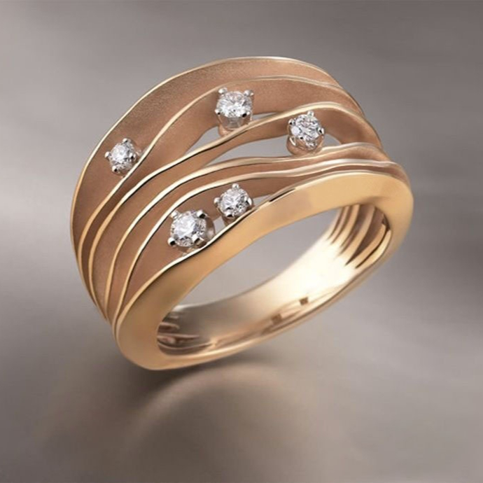 Simple Elegant Golden Diamond Women's Ring