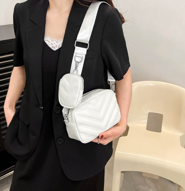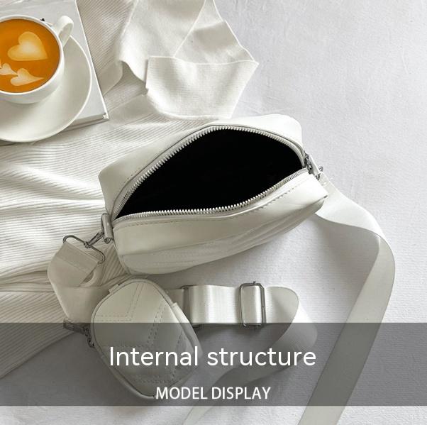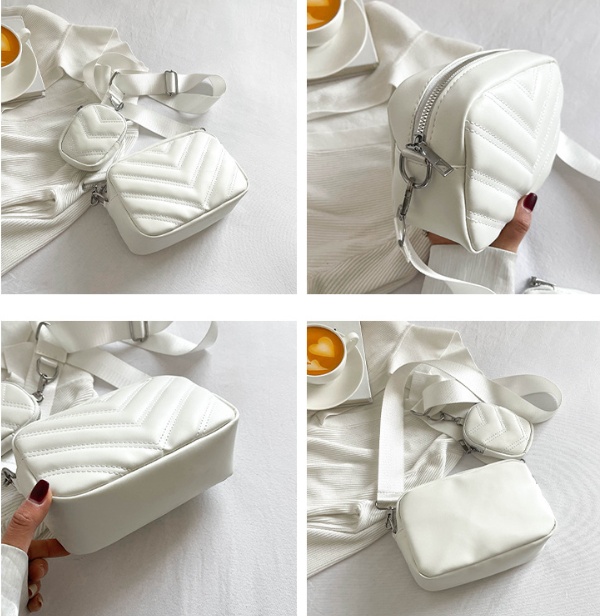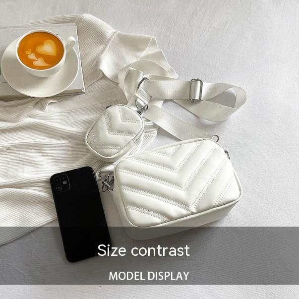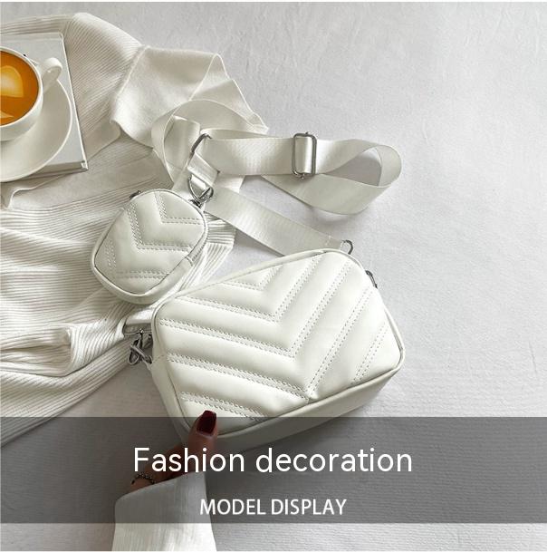 Simple Embroidered Line Shoulder Bag Soft Leather Textured Retro