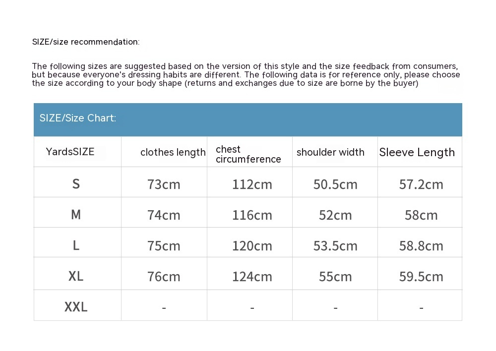 1. Asian sizes are 1 to 2 sizes smaller than European and American people. Choose the larger size if your size between two sizes. Please allow 2-3cm differences due to manual measurement. 2. Please check the size chart carefully before you buy the item, if you don't know how to choose size, please contact our customer service. 3.As you know, the different computers display colors differently, the color of the actual item may vary slightly from the following images.