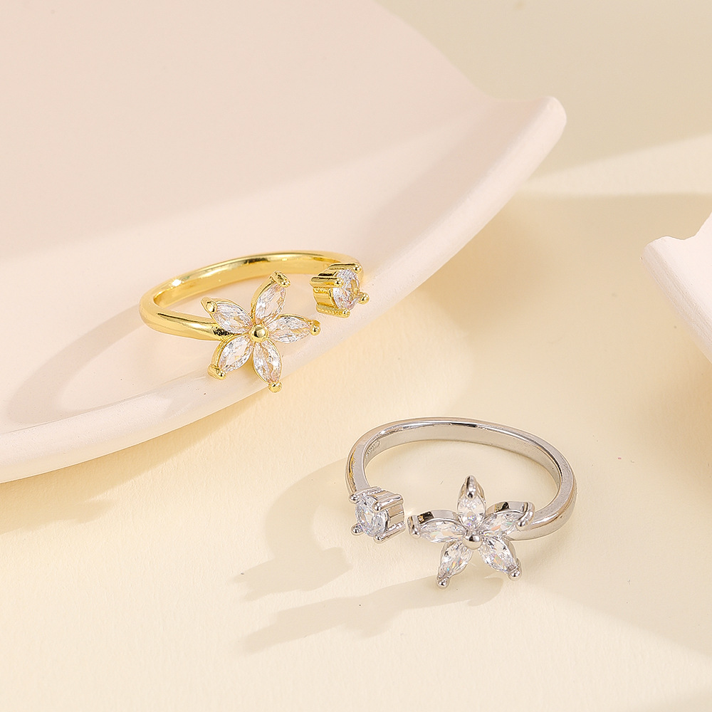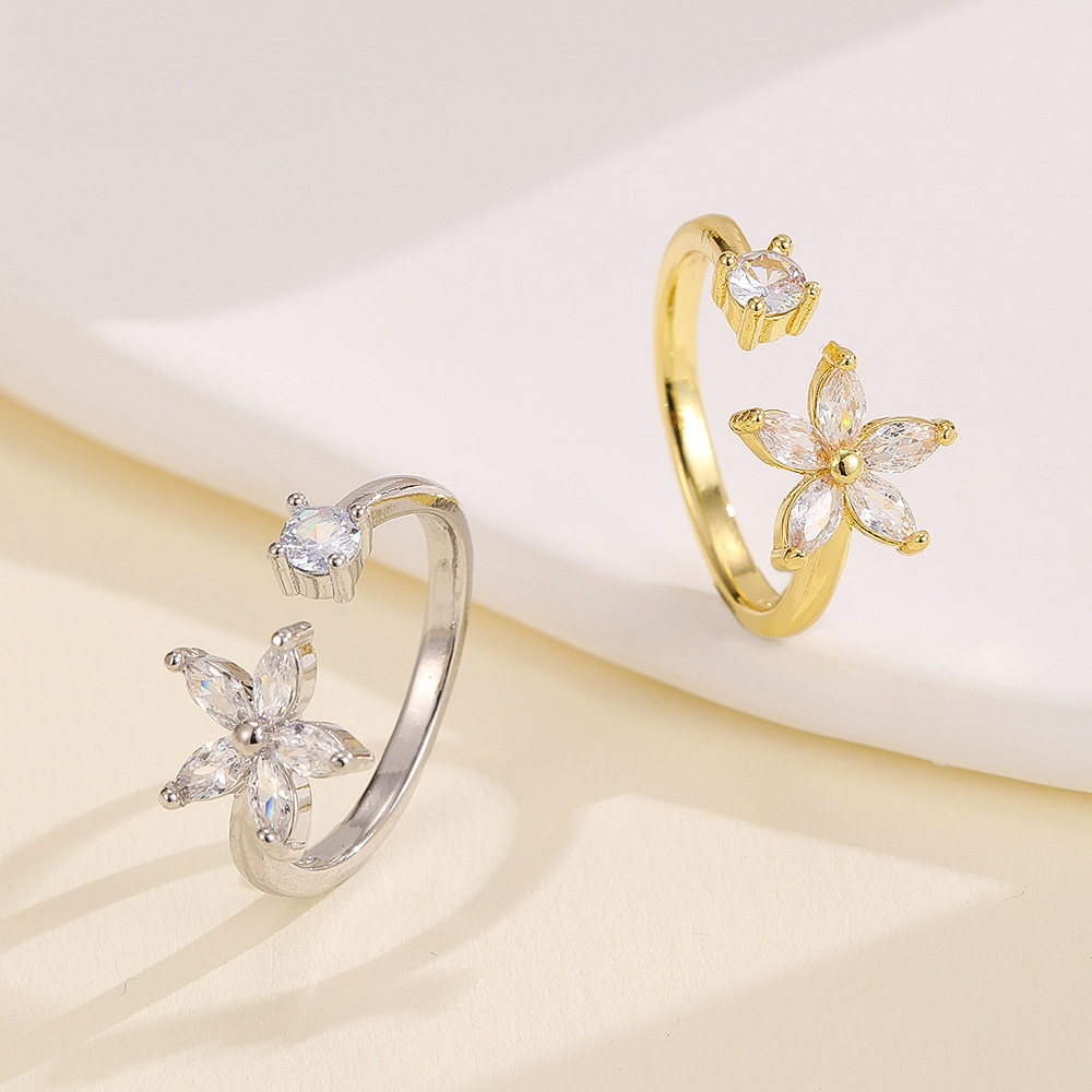 Color: gold flower open ring, silver flower open ring