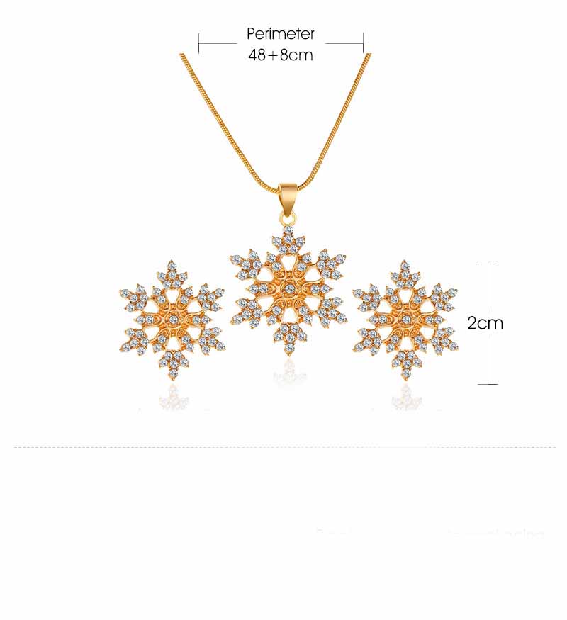 Simple Full Diamond Snowflake Necklace Earring Set