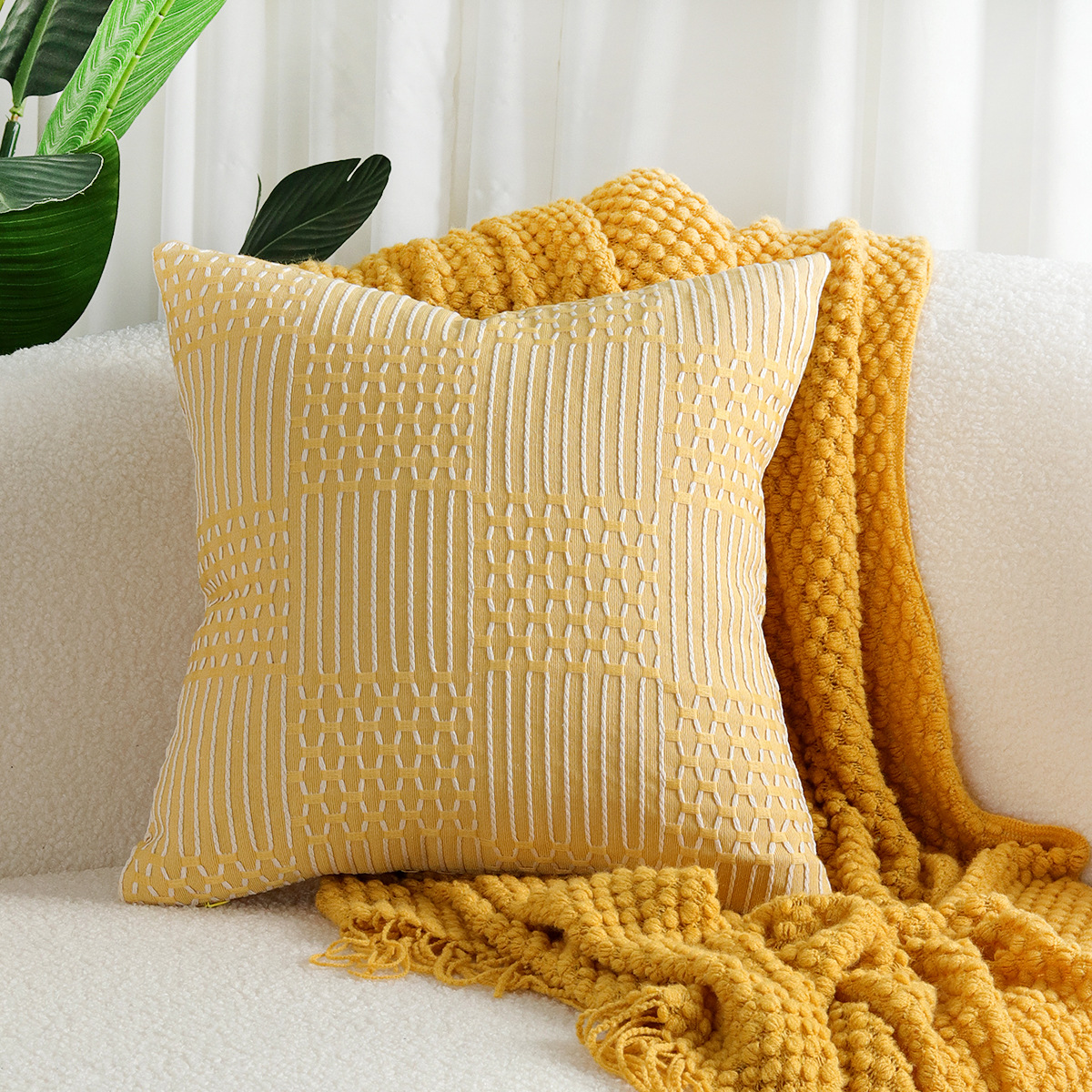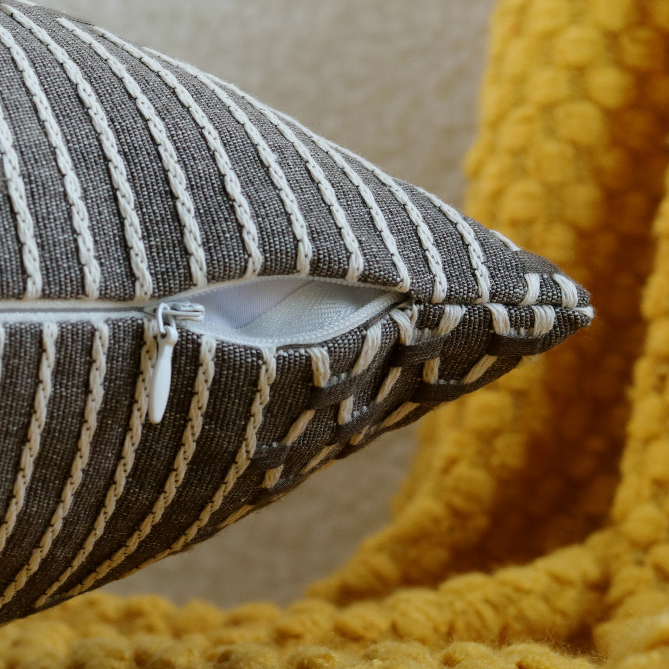 Color: blue line woven pillowcase, yellow line woven pillowcase, Gray Line woven pillowcase, mint green line woven pillowcase, Orange Line woven pillowcase