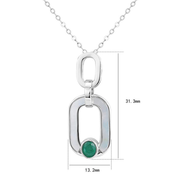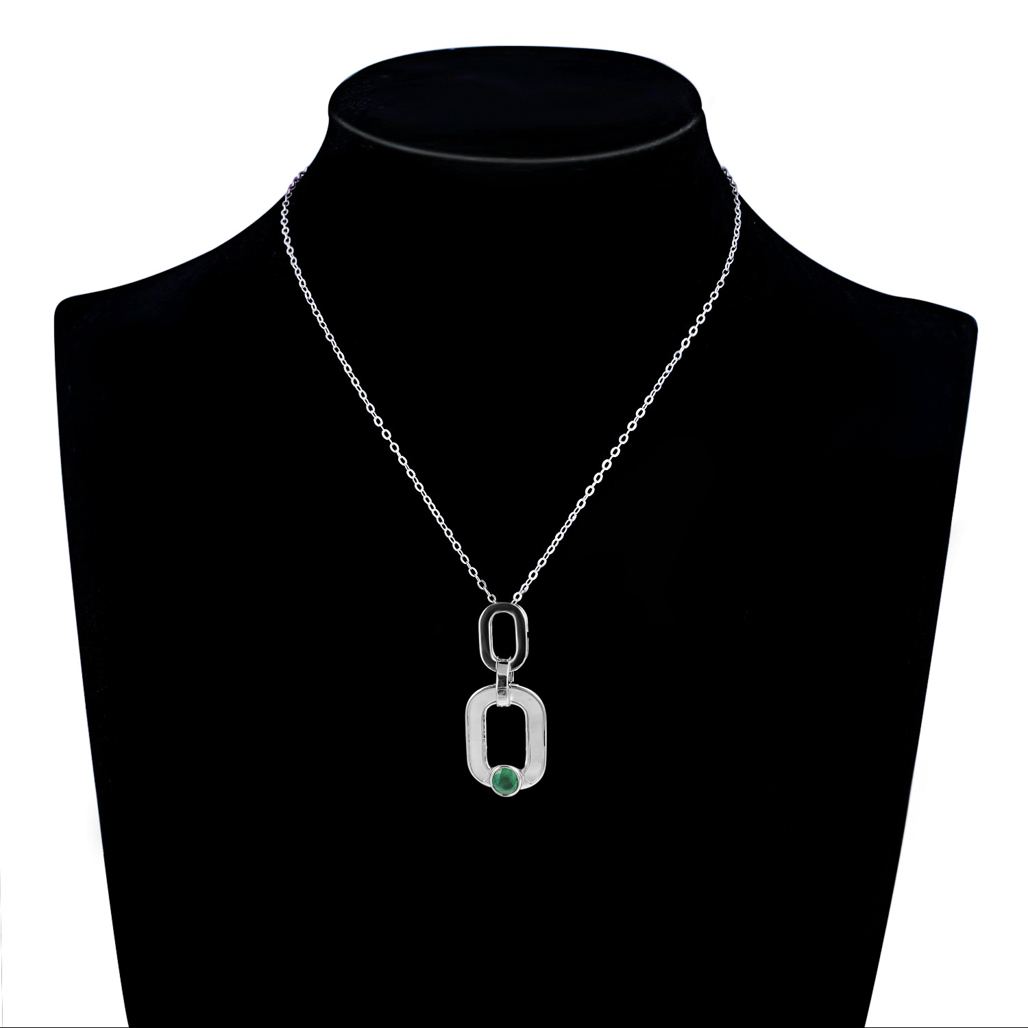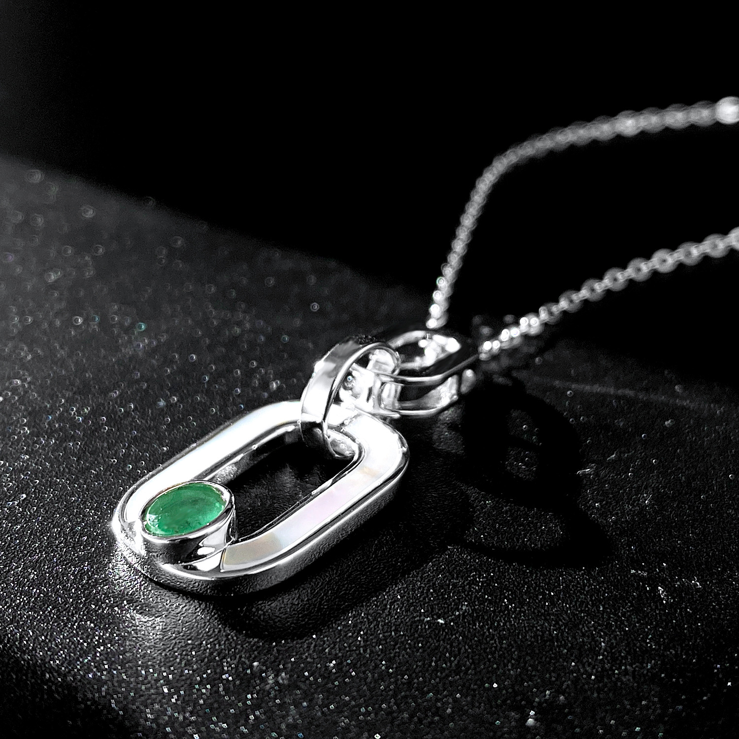 Simple Geometry Women's Necklace Ring S925 Silver Bag With Emerald Pendant