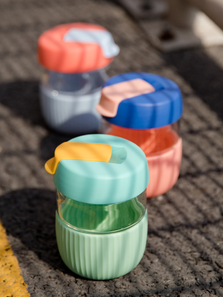 Simple Hand-held Glass Coffee Cup Sealed High-value Water Cup With Lid