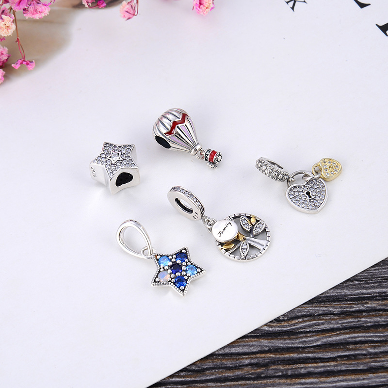 Color: five-pointed star, hot air balloon, five-pointed star pendant, tree, love