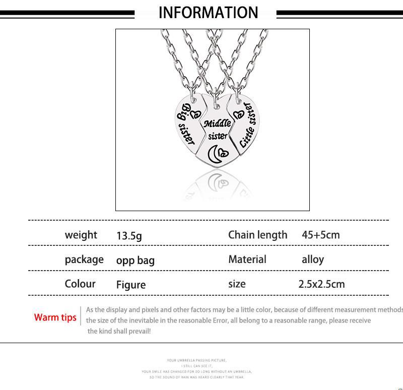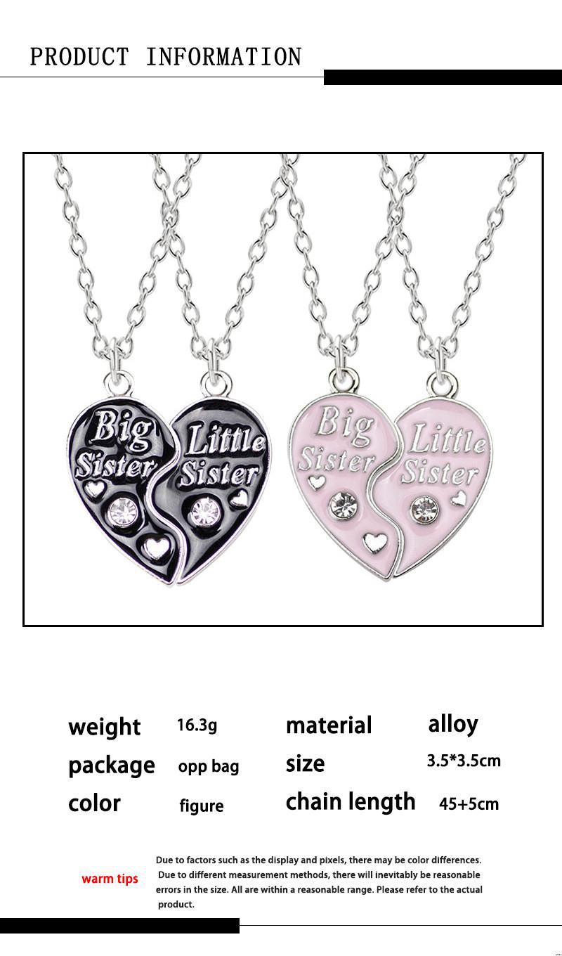 Colors: Big Sister, Black Big Sister, Medium & Big Sister, Magnetic Heart, Dolphin, Pink Big Sister, Big Sister, Magnetic White Daisy, Magnetic Golden Daisy, Magnetic Glitter Heart, Colorful Heart, Pink Red Heart, Key and Lock, Magnetic Dolphin, Butterfly Sisters, Burger and Fries, Magnetic Rainbow, Best BFF, Heart Puzzle, Big Sister, Butterfly Sisters, Three-Piece Necklace, Glitter Star, Glitter Heart, Big Sister Mom, Magnetic Heart Wings