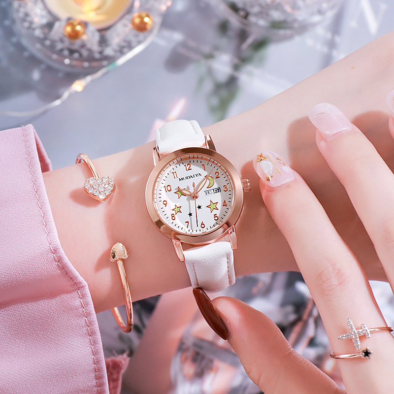 Simple High School Student Luminous Double Calendar Women's Quartz Watch