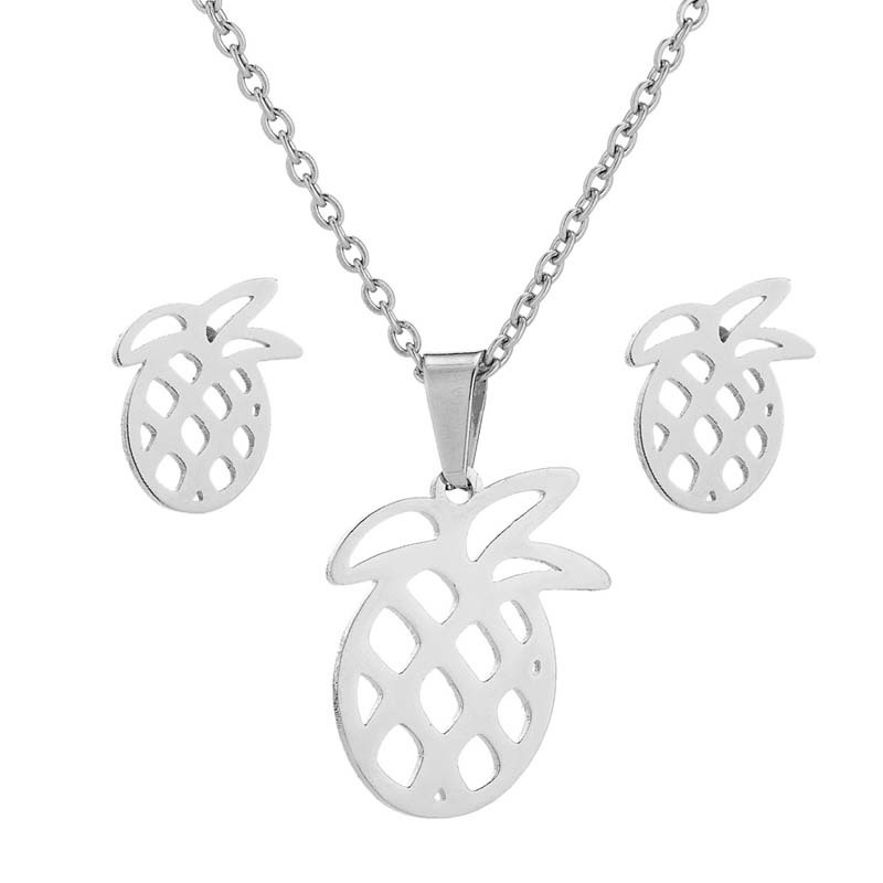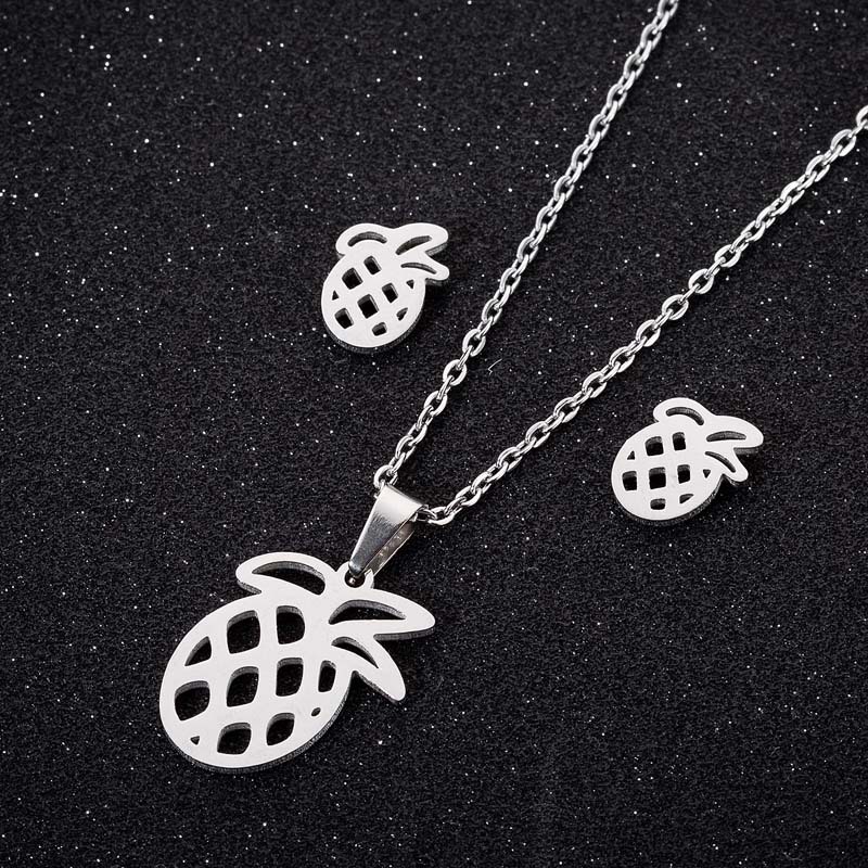 Simple Hollow Out Pineapple Fruit Jewelry Earrings Necklace Stainless Steel Jewelry Set
