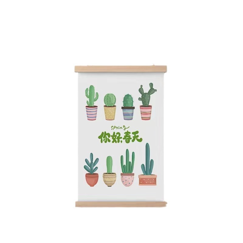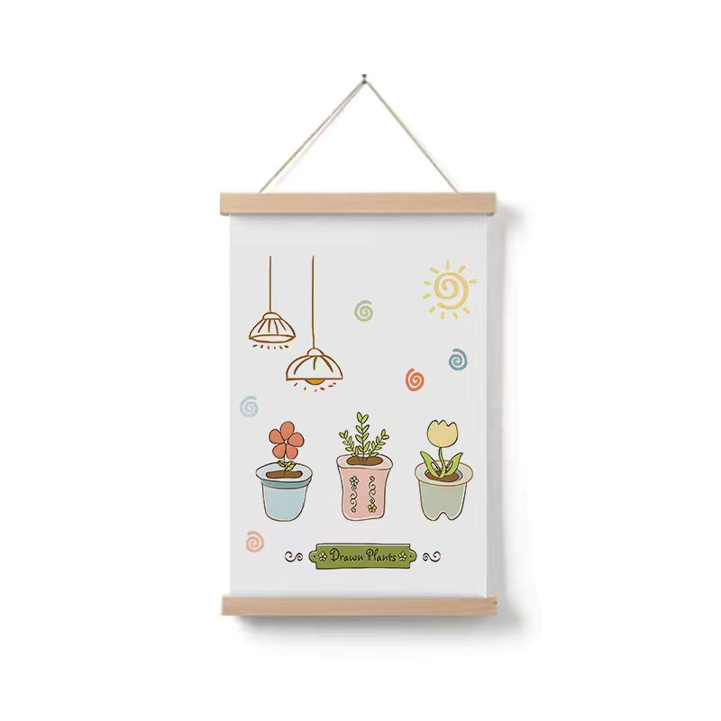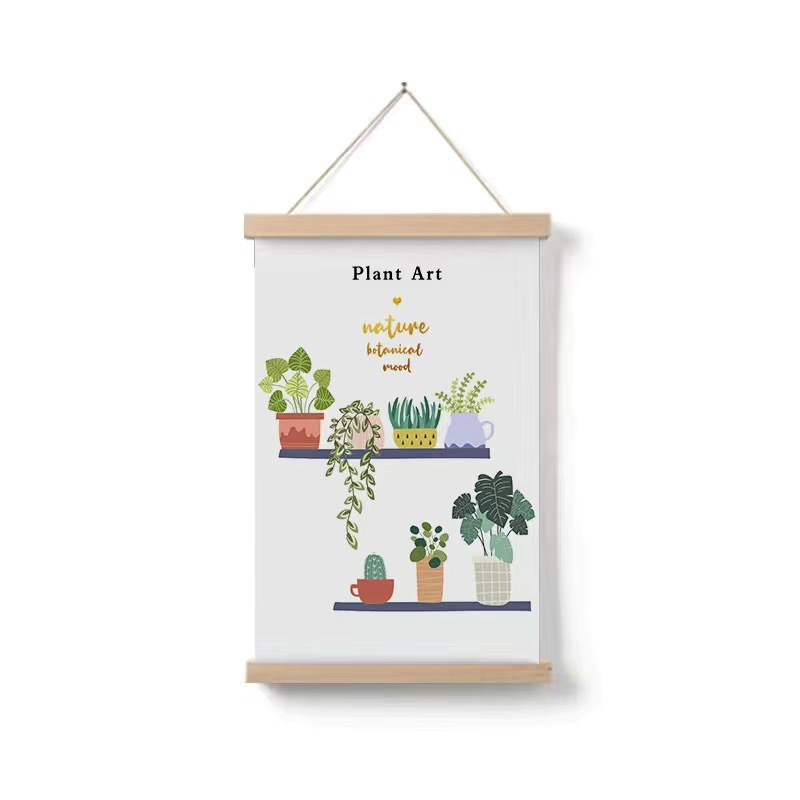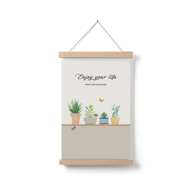 Simple Home Cartoon Green Plant Solid Wood Fabrics Hanging Picture
