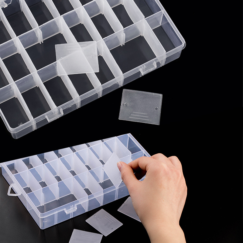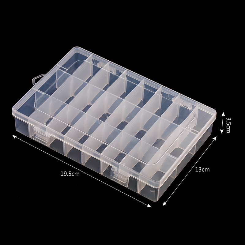 Specifications: 1 storage box with 24 compartments [removable liner], 1 storage box with 20 compartments [removable liner], 1 storage box with 12 compartments [removable liner], 1 storage box with 10 compartments [removable liner], 1 small storage box with 24 compartments [removable liner], 1 storage box with 9 compartments [removable liner]