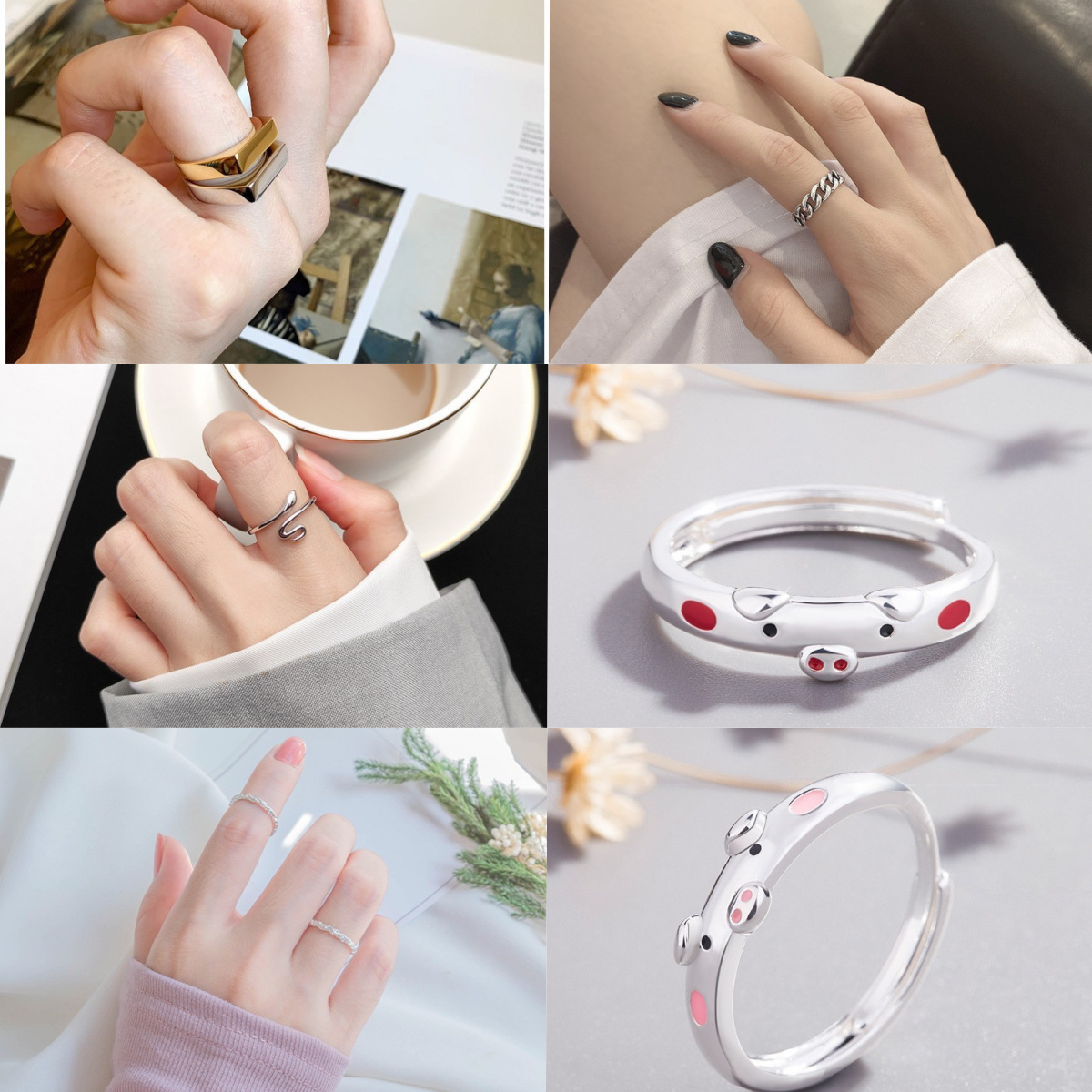 Color: Dolphin ring (white gold color), candy wrap ring (cooperation silver), hollow heart ring (white gold color), Thorn ring (white gold color), red piggy ring, pinkpig ring, tank chain ring, simulated snake ring, X Dragon Ball Ring, dyed black angel wings ring, rectangular glossy ring_white gold color, rectangular glossy ring_Gold, vintage Smiley ring, silver black plaid [Stack mouth], golden white plaid [Stack mouth]], heart-shaped Plaid [Stack mouth], love forever ring, cross single ring, distressed multi-layer ball ring, multi-layer wire ring, leaf ring