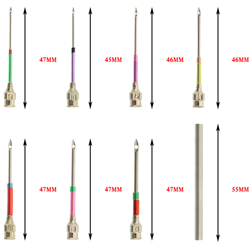 The total length of the needle is about 4.4-4.8cm. The thickness of the needle refers to the outer diameter. The measurement error is ±0.02. The numerical value is only for reference. If there is a rough place at the needle eye, it can be polished with fine sandpaper.