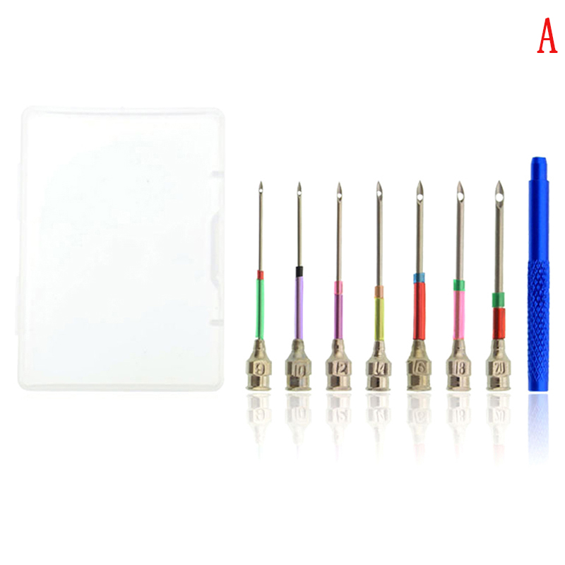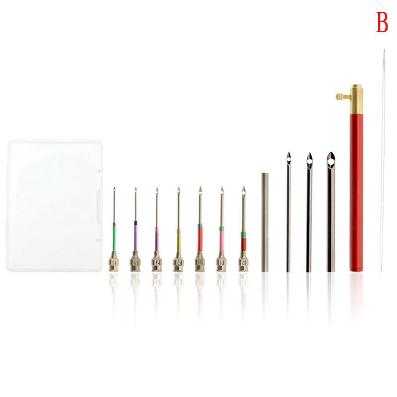 Package B :Combination full-size head 9-50 head plus exchange rod: 9.0; 10.0; 12; 14; 16; 18; 20; 25; 35; 50 gauge needle, plus a long exchangeable head rod; a needle threader; Pearl bag and storage box packaging; about 37g