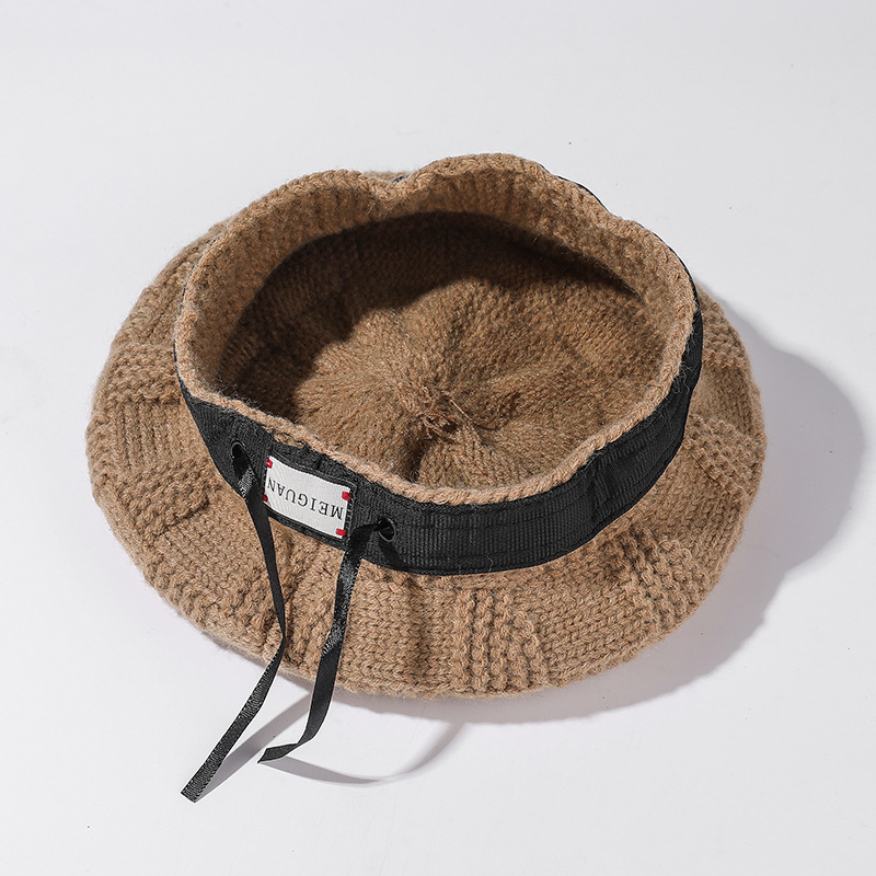 Simple Knit Plaid Beret Autumn