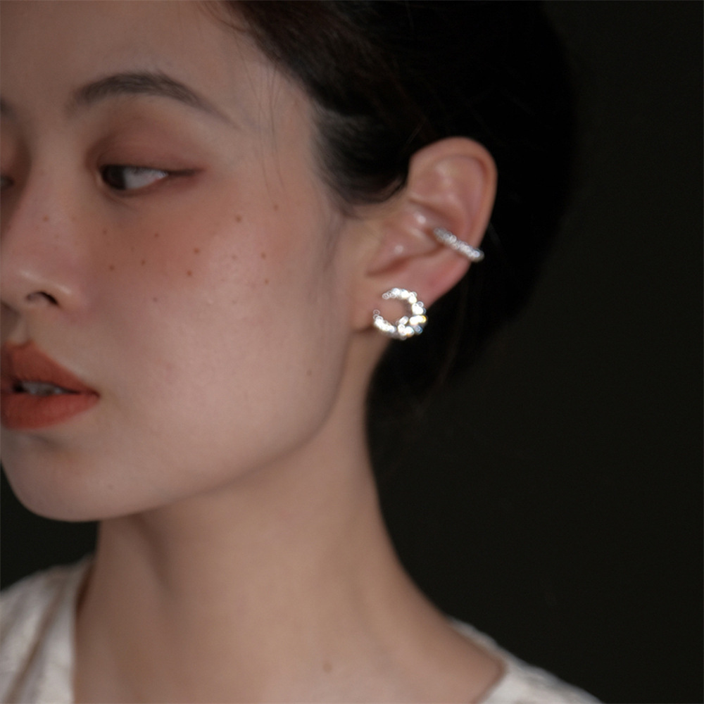 Color: EH0275 Single Ear Cuff (Silver), EH0276 Pair of Moon Stud Earrings