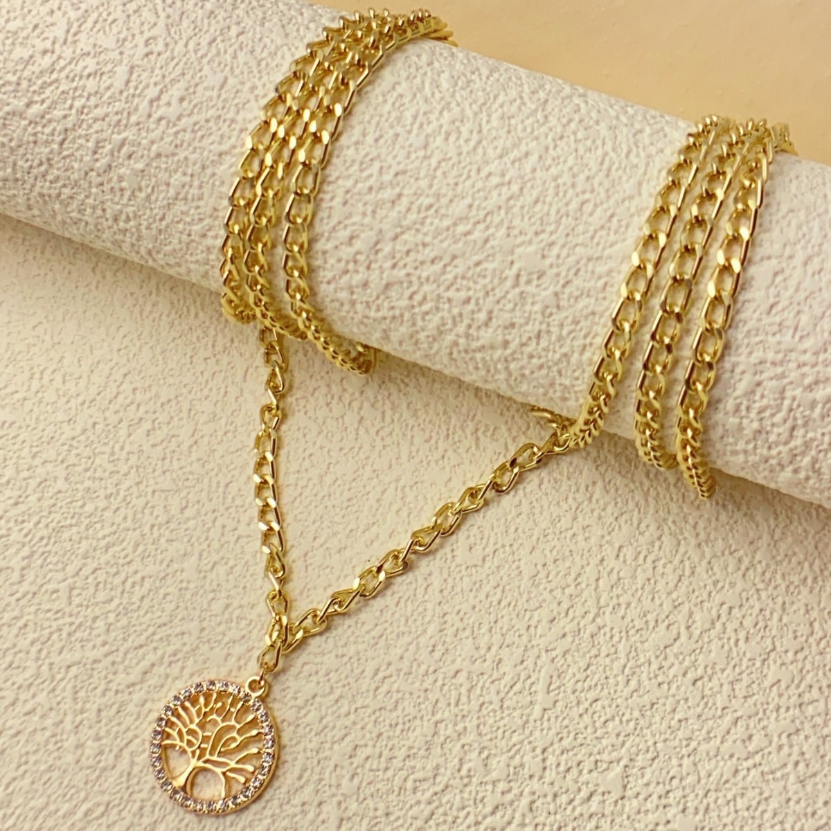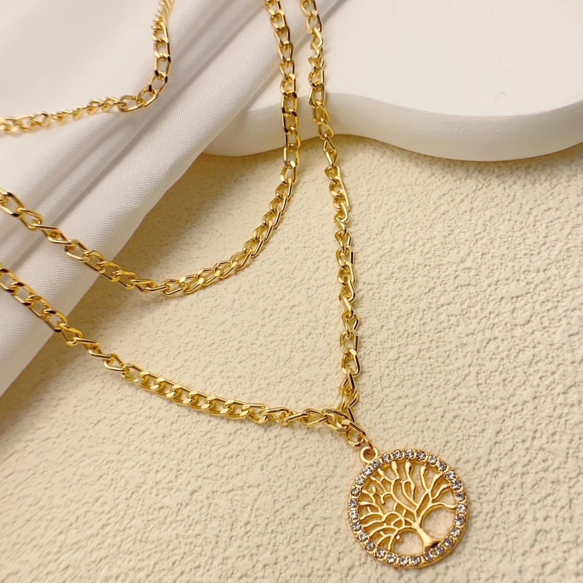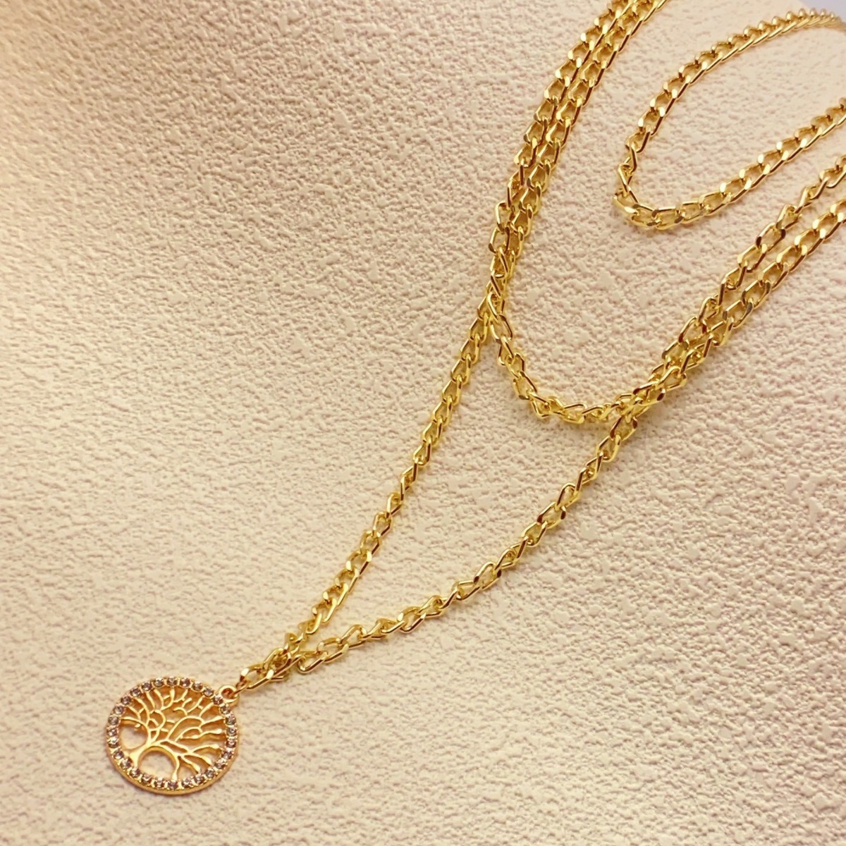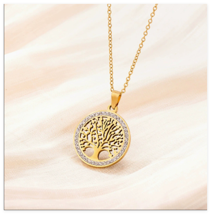 Simple Micro-paved Brilliant Stone Tree Of Life Necklace