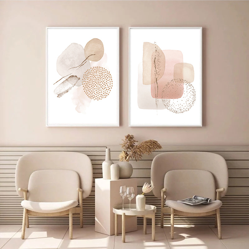 Simple Modern Nordic Abstract Geometry Gold Foil Frameless Decorative Painting Beige Gilt Living Room Sofa Wall Painting