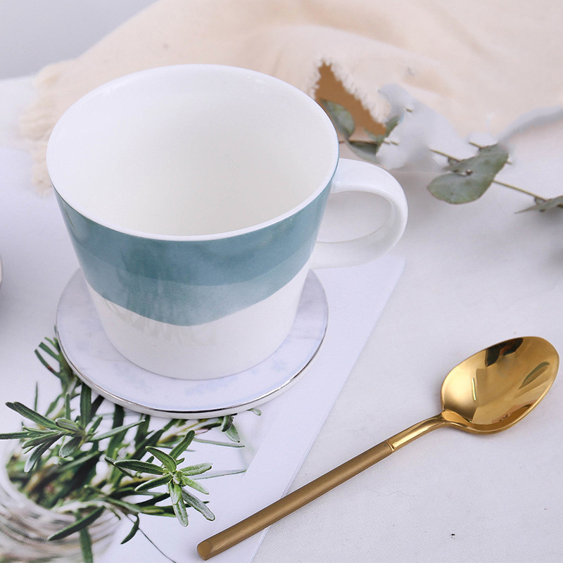 Simple mug with lid spoon ceramic water cup
