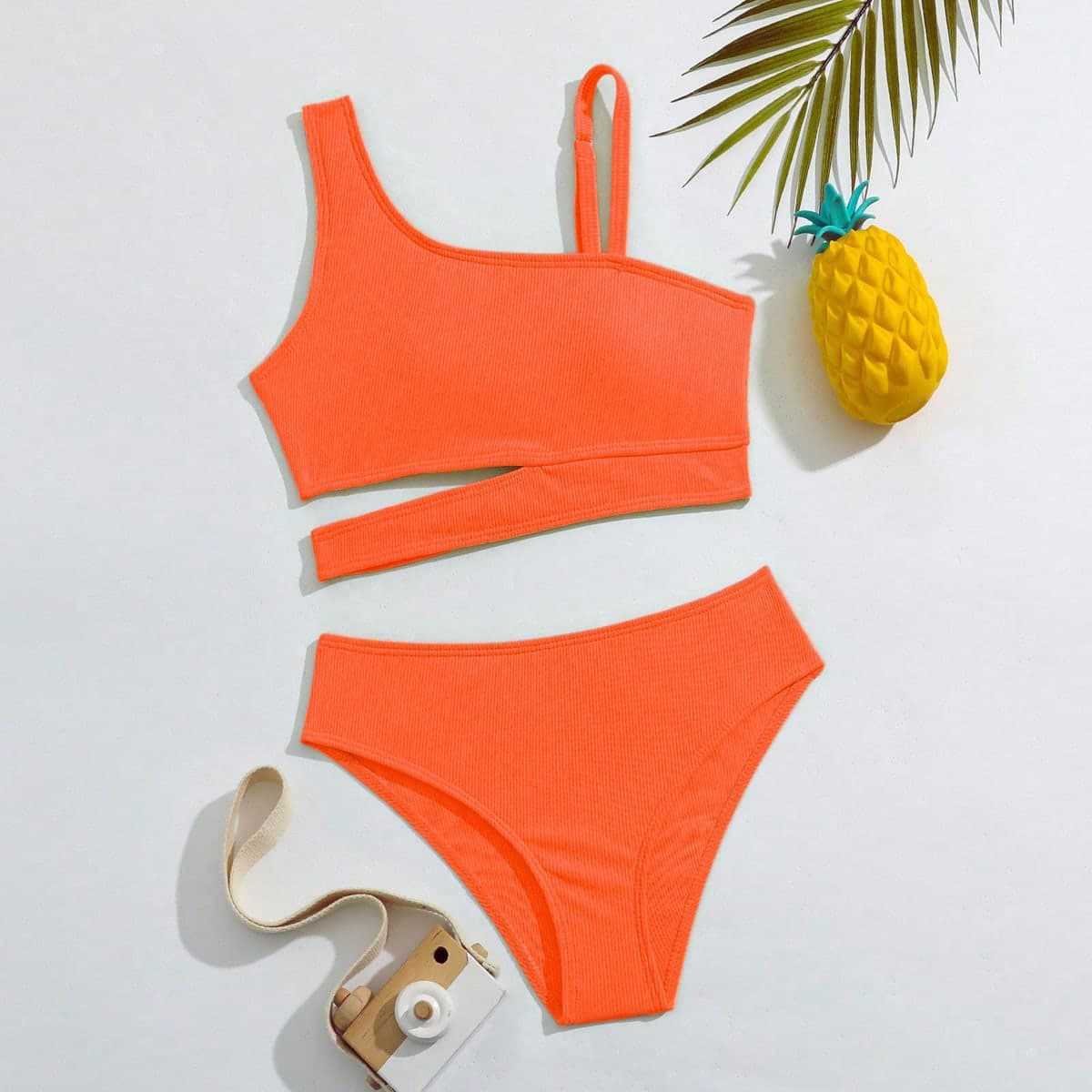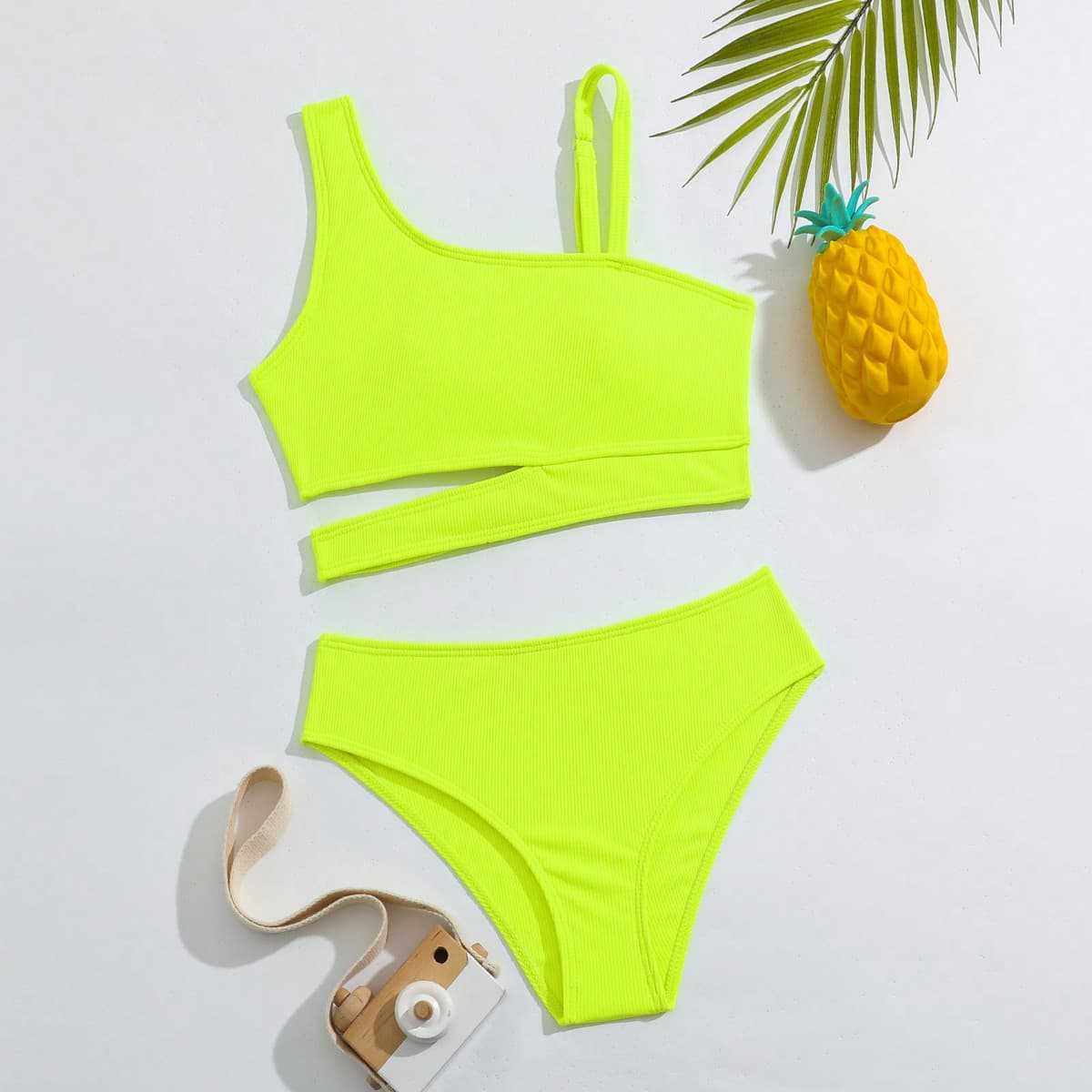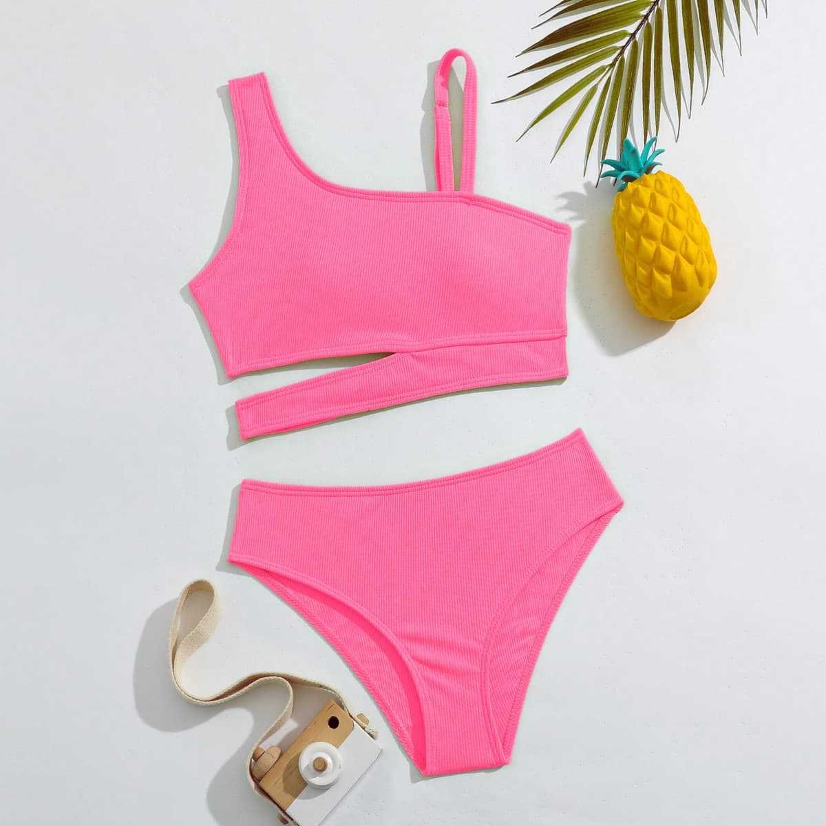 Simple Multi-colored Two-piece Swimsuit For Baby Girls
