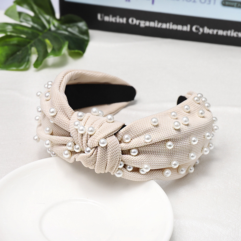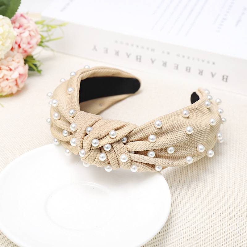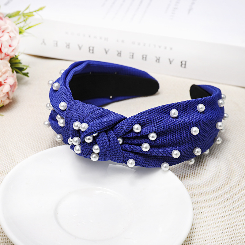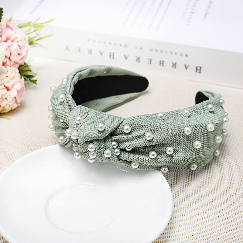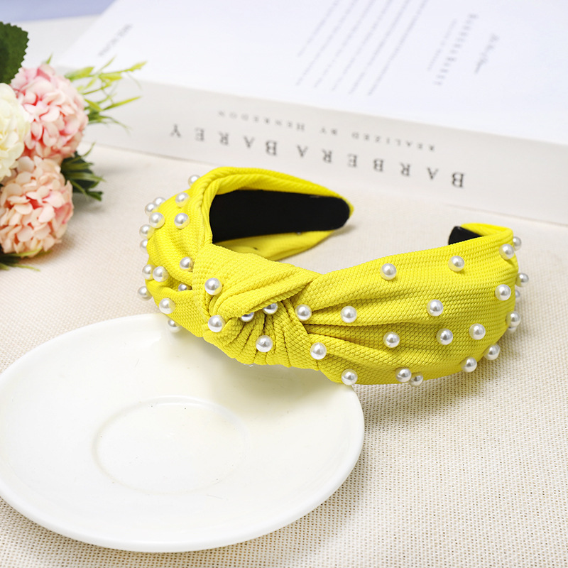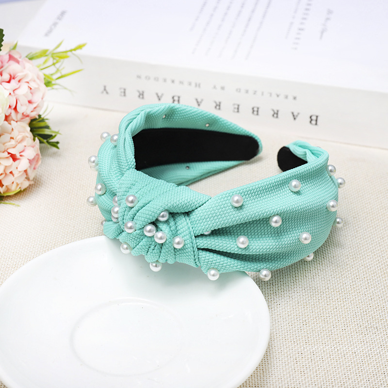 Color: Fluorescent Green Pearl Knotted Headband, Khaki Pearl Knotted Headband, Green Pearl Knotted Headband, Yellow Pearl Knotted Headband, Grass Color Pearl Knotted Headband, Royal Blue Pearl Knotted Headband, Black Pearl Knotted headband, watermelon red pearl knotted headband, white pearl knotted headband, beige pearl knotted headband, pink pearl knotted headband