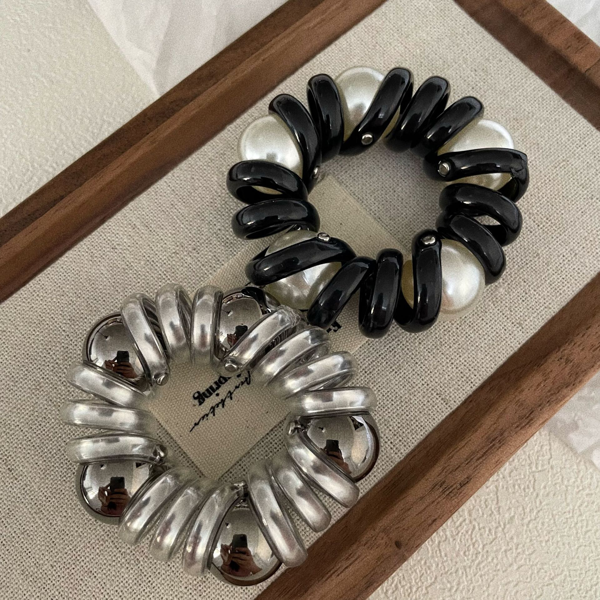 Product information:Processing Technology: manual Color: black, silver Material: Pearl Style: Large
