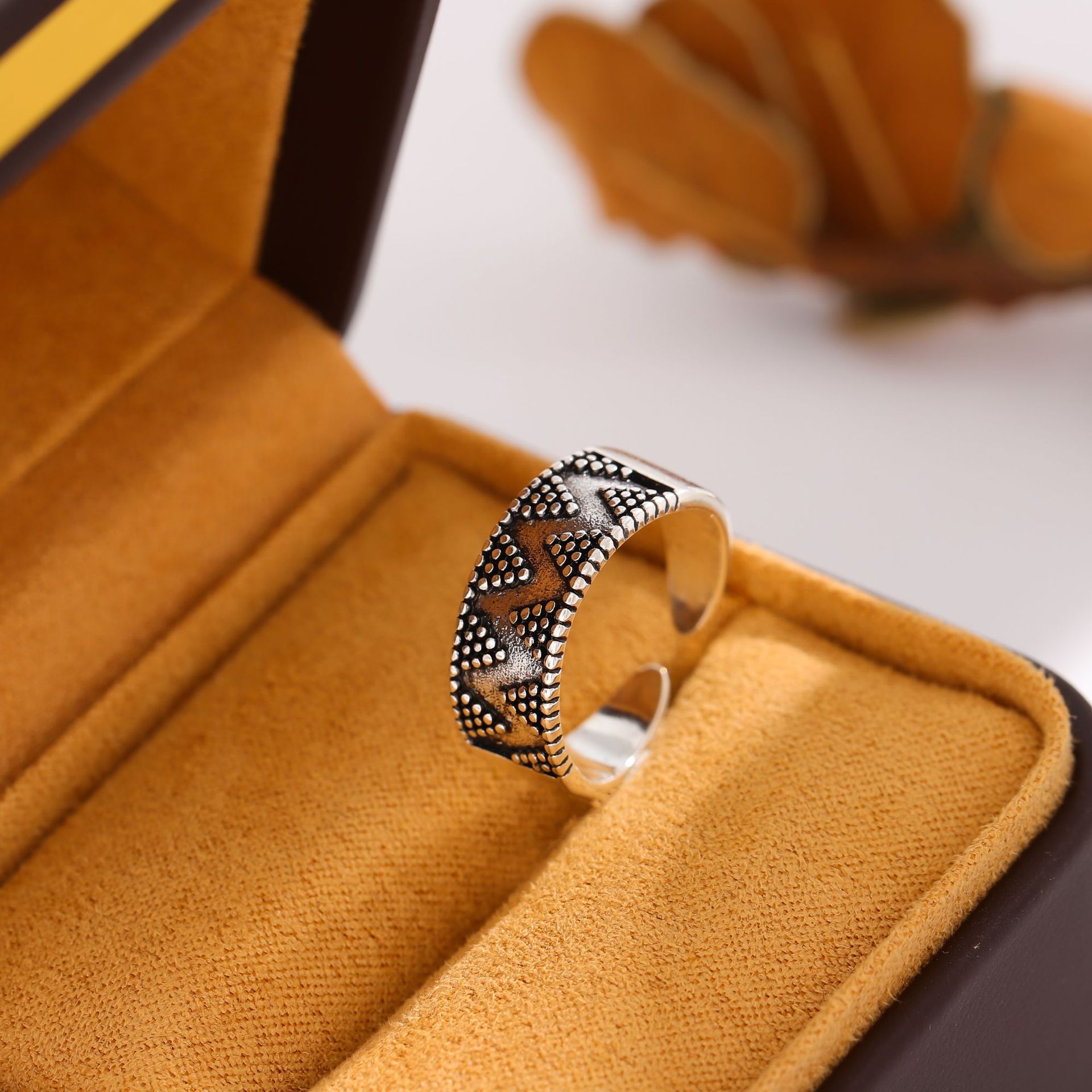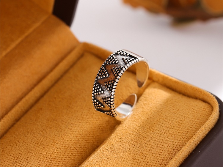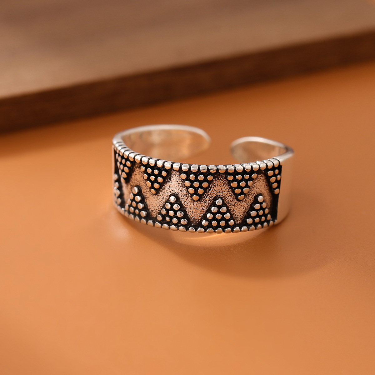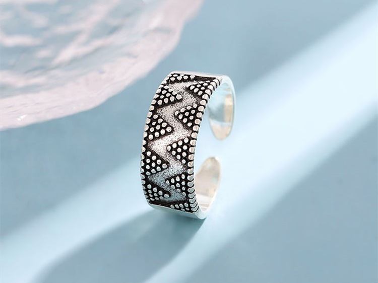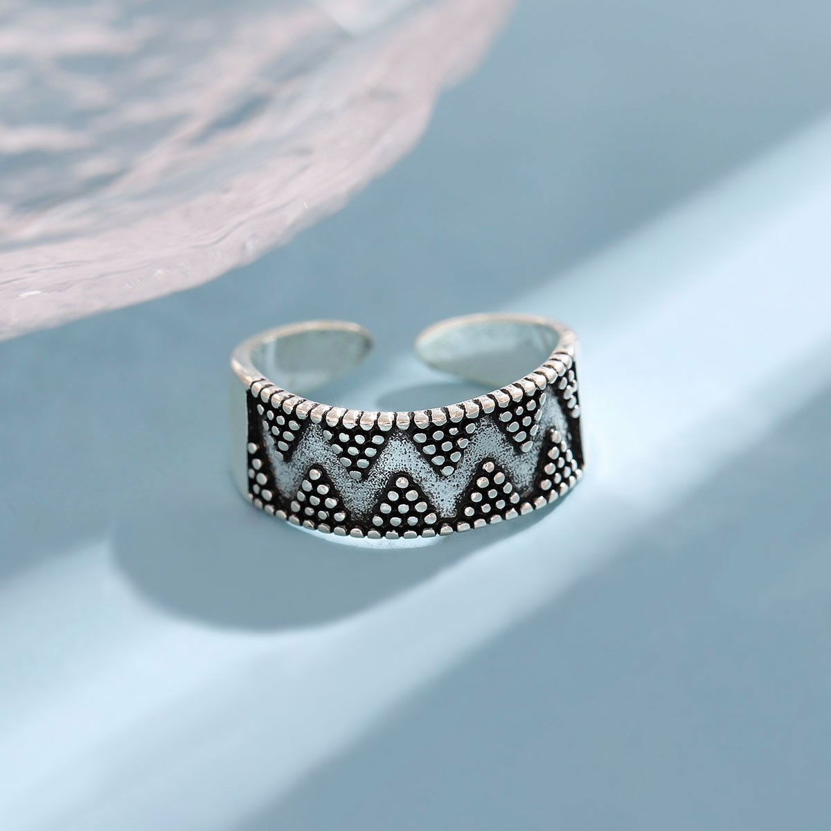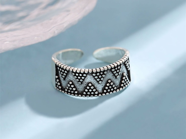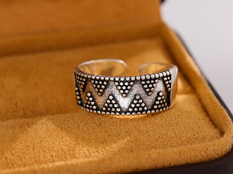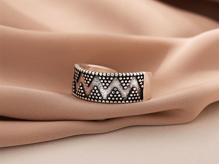 Simple Polka Dot Wave Irregular Wide Retro Antique Finishing Opening Ring