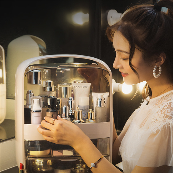 Are you still worried about the mess or dirtiness of your cosmetics? This large-capacity, double open door make-up storage box can protect your skincare products well, even if you are in the bathroom, you don't have to worry about getting wet.