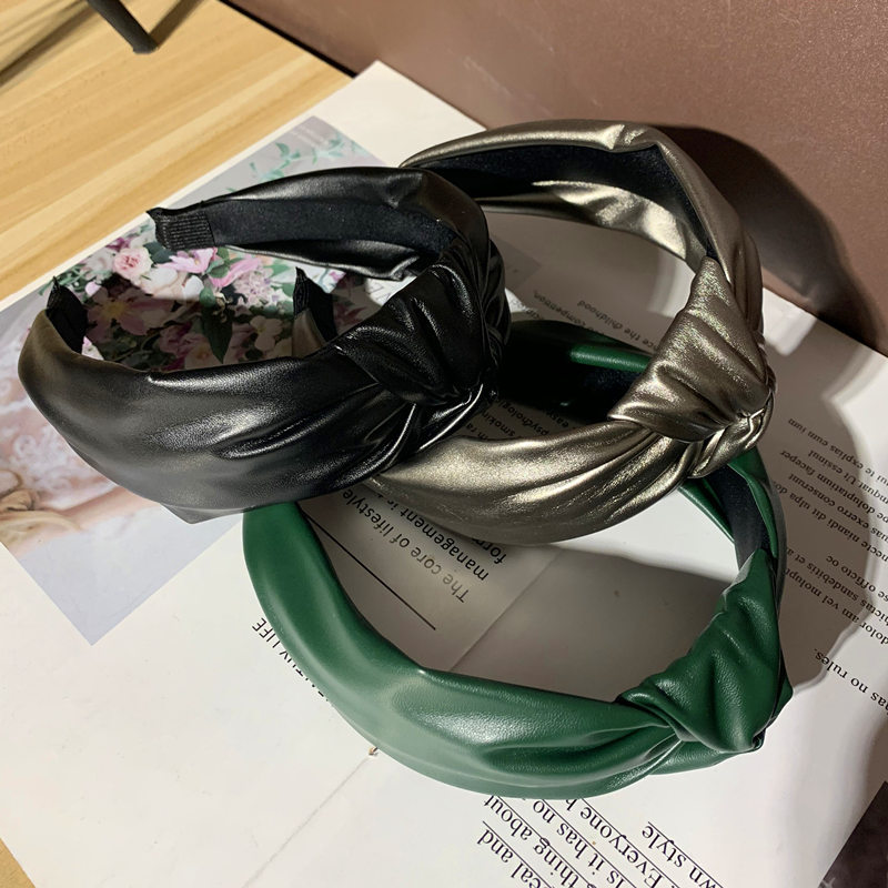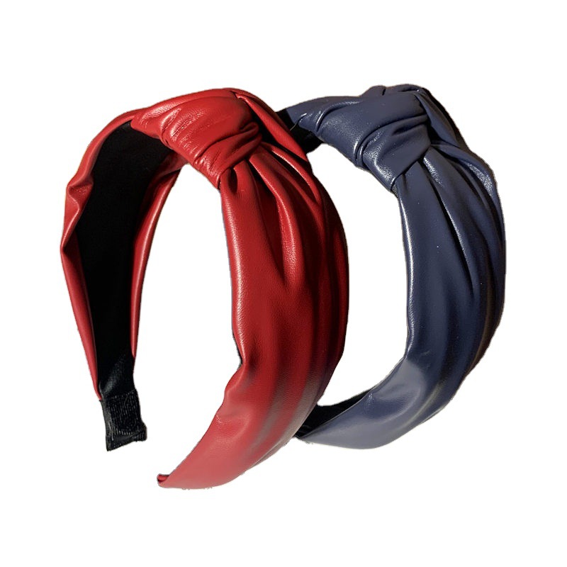 Simple PU Leather Knotted Wide Brim Hair Band