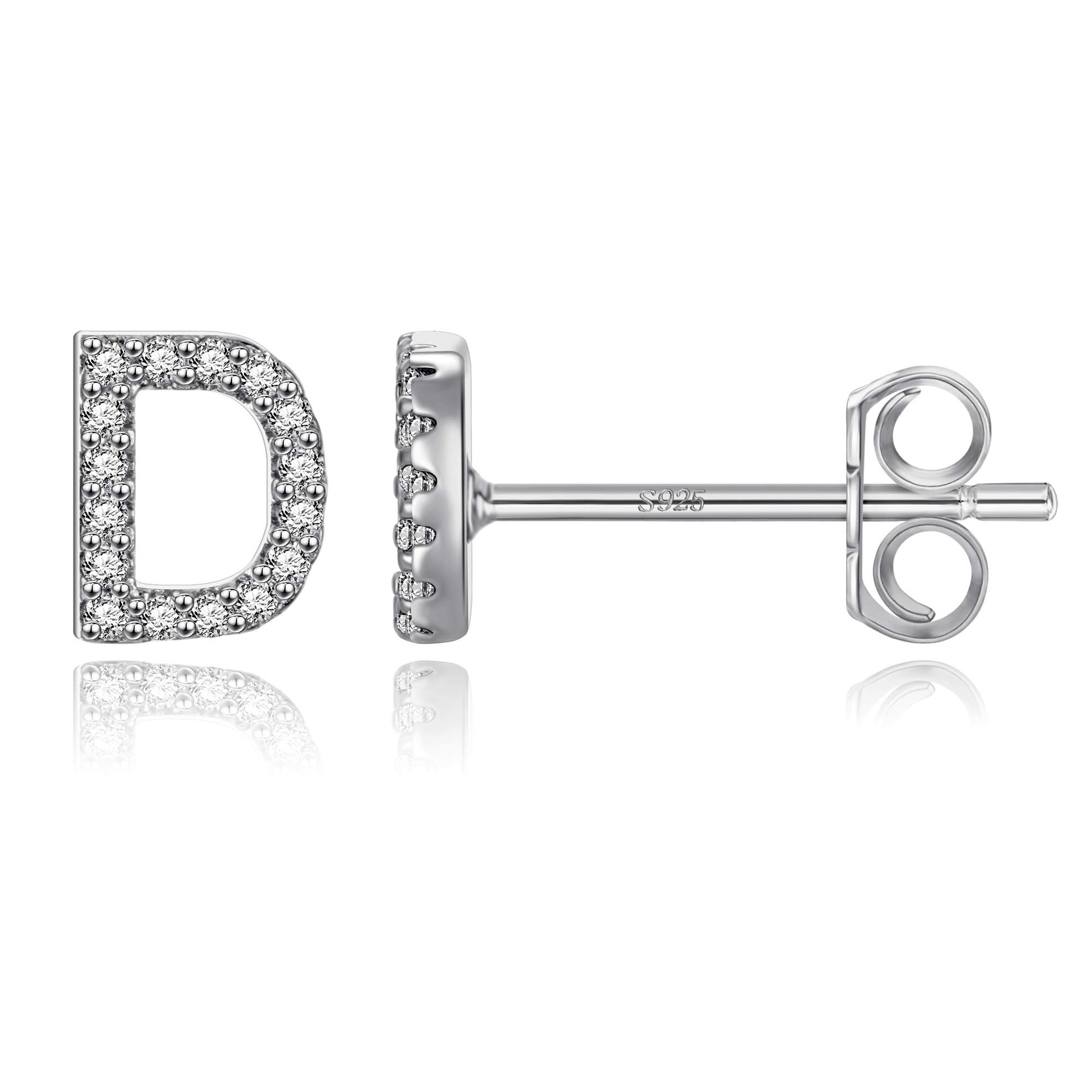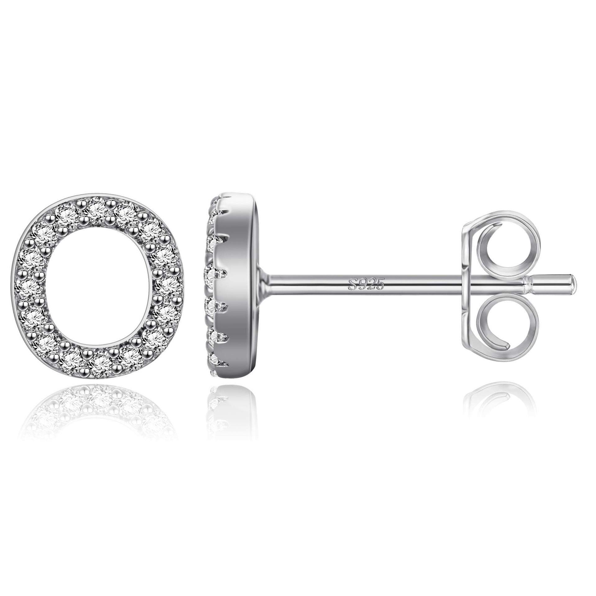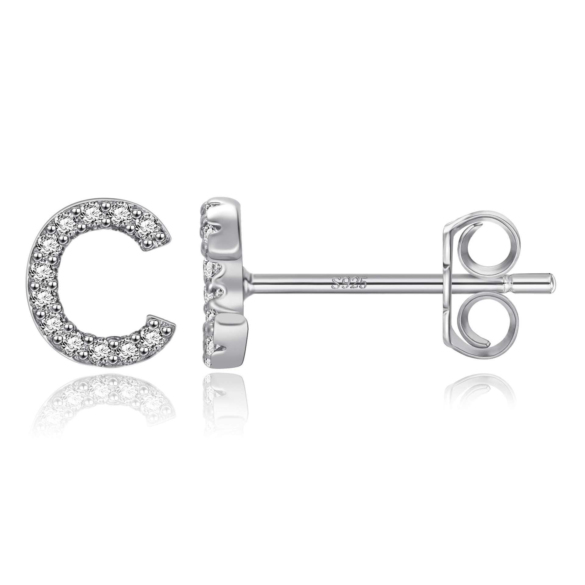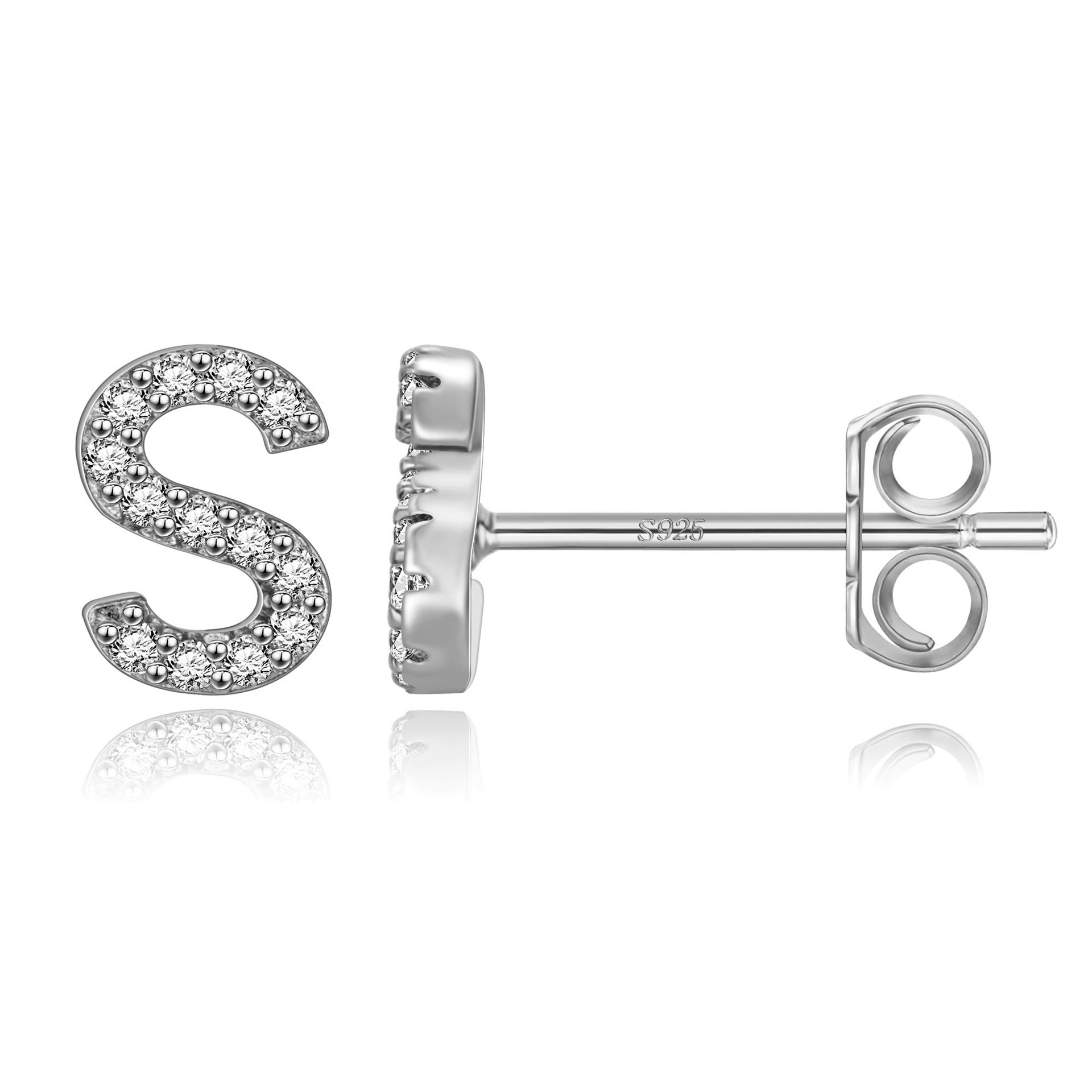Simple Rhinestone Silver Needle English Alphabet Letter Earrings